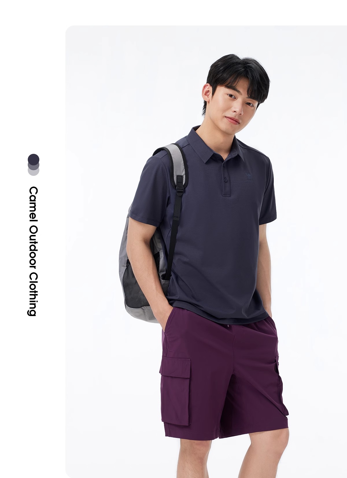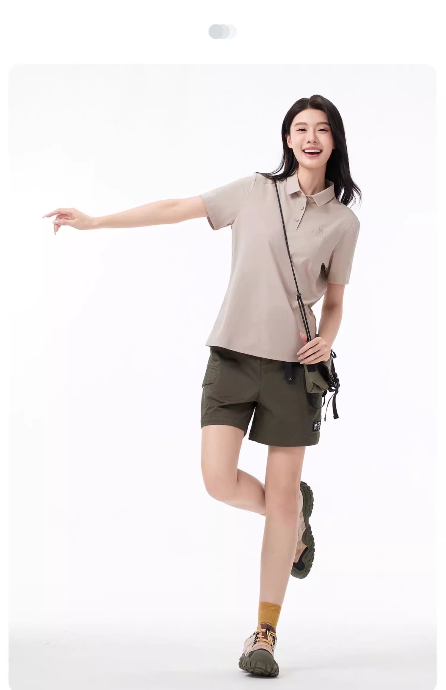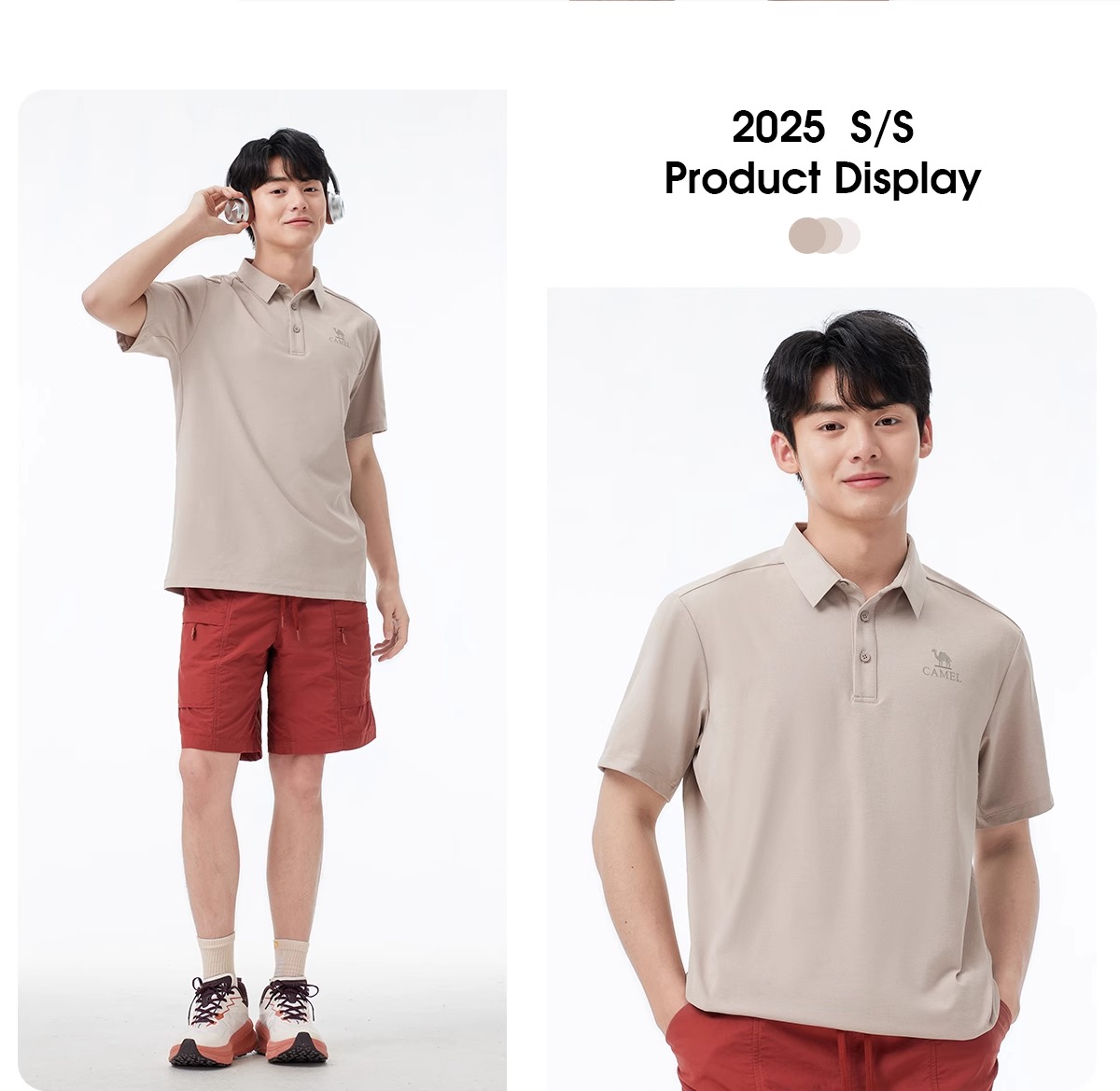 CAMEL骆驼 户外速干T恤 男女款夏季防晒短袖POLO衫弹力抗皱上衣 青新绿-女款 A25BK08013