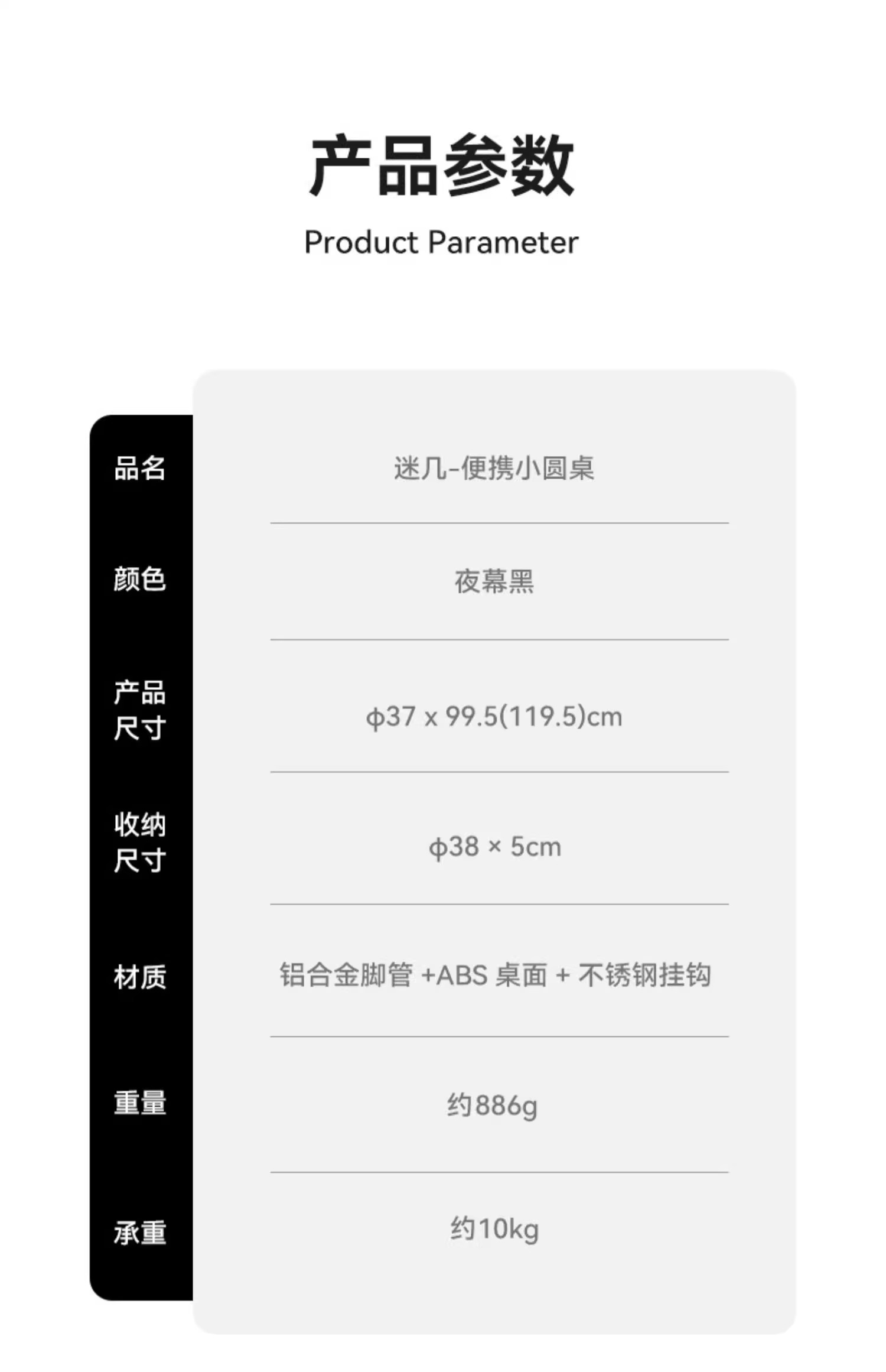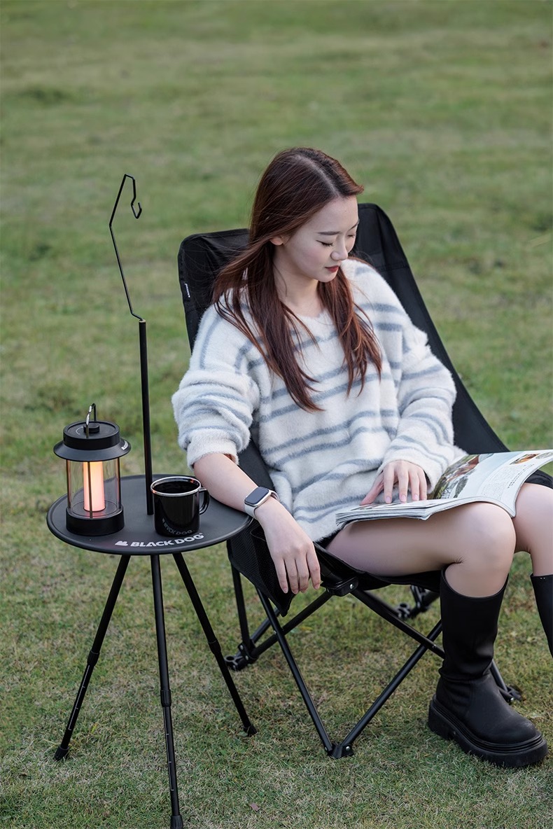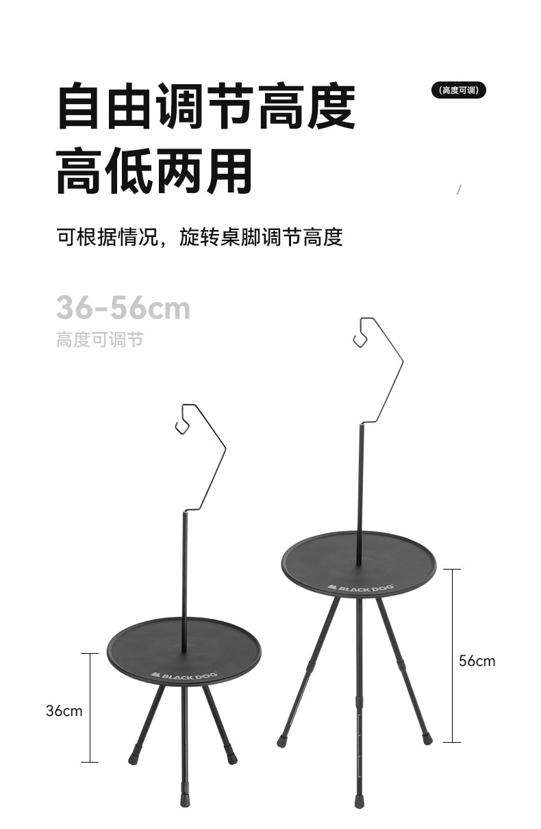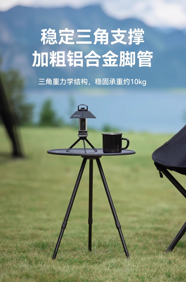 BLACKDOG黑狗 户外露营小圆桌 营便携式可升降桌椅铝合金折叠桌子 夜幕黑 CBD2300JJ028