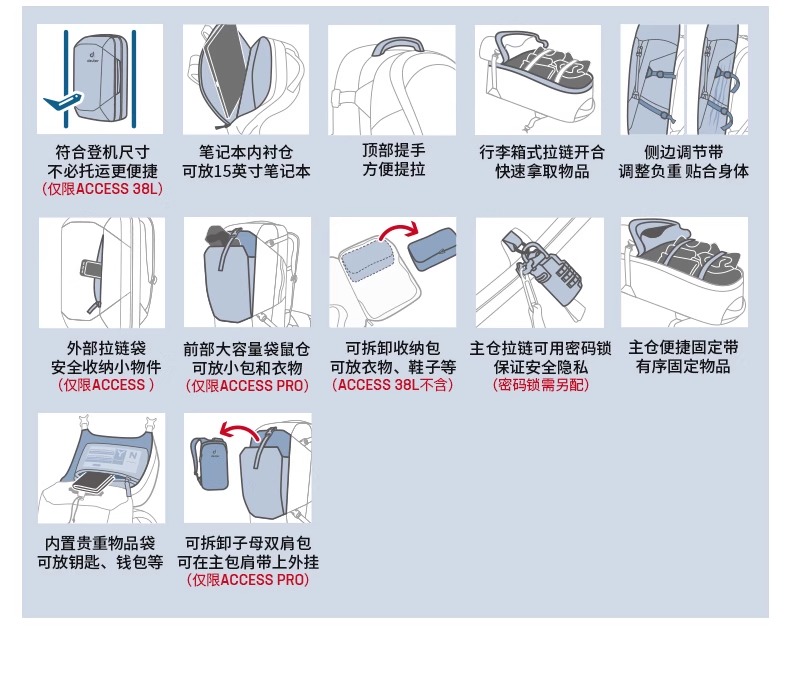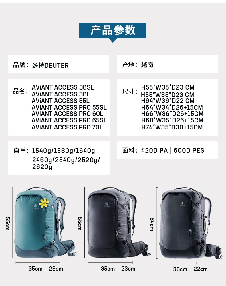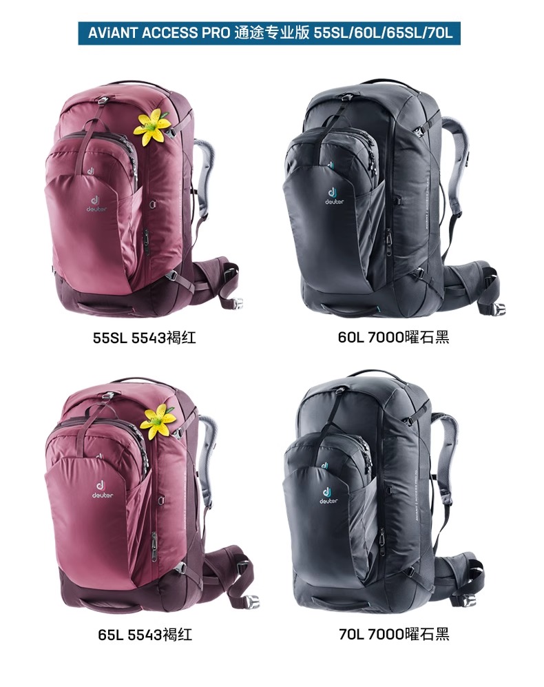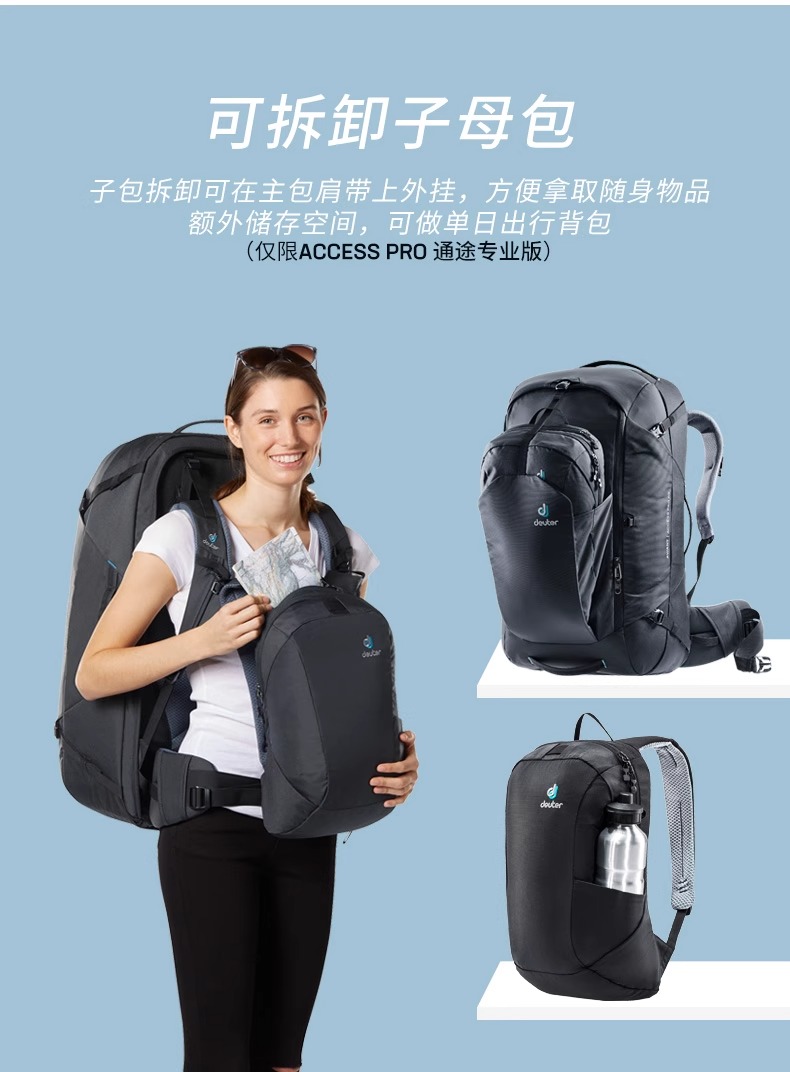 deuter多特 通途专业版 ACCESS PRO双肩背包 子母包 德国进口逸行-通途Pro 商务旅行双肩包 褐红55SL 3510122