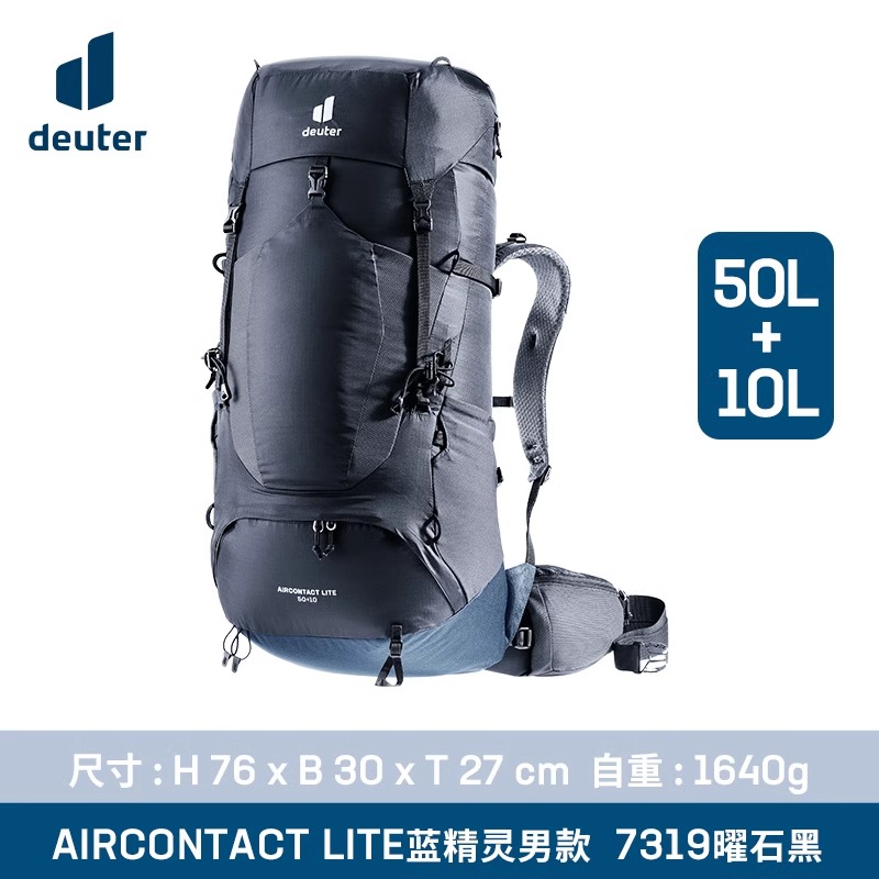 deuter多特 双肩背包 德国进口蓝精灵Aircontact Lite 男款户外双肩背包 曜石黑50+10L 3340323