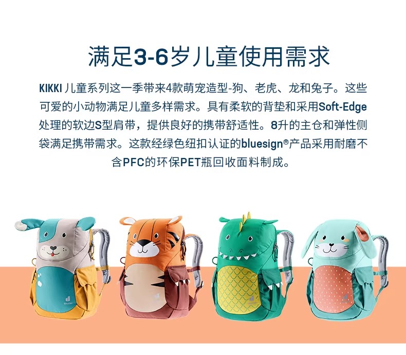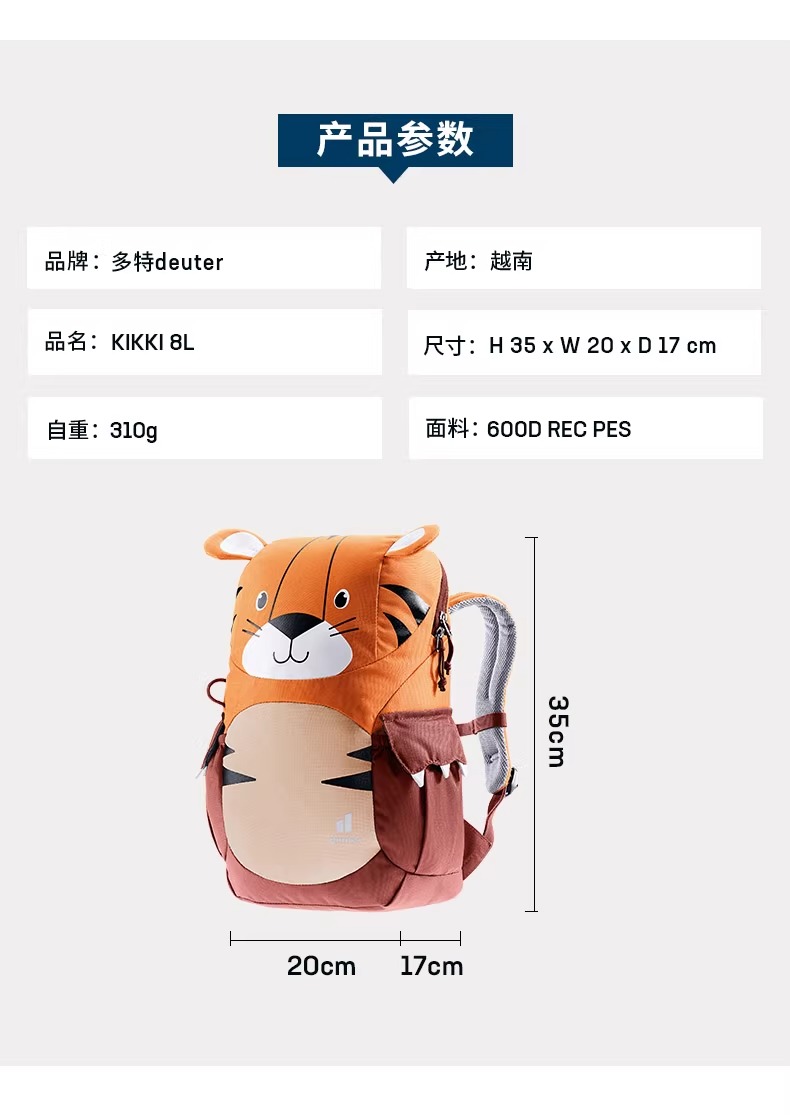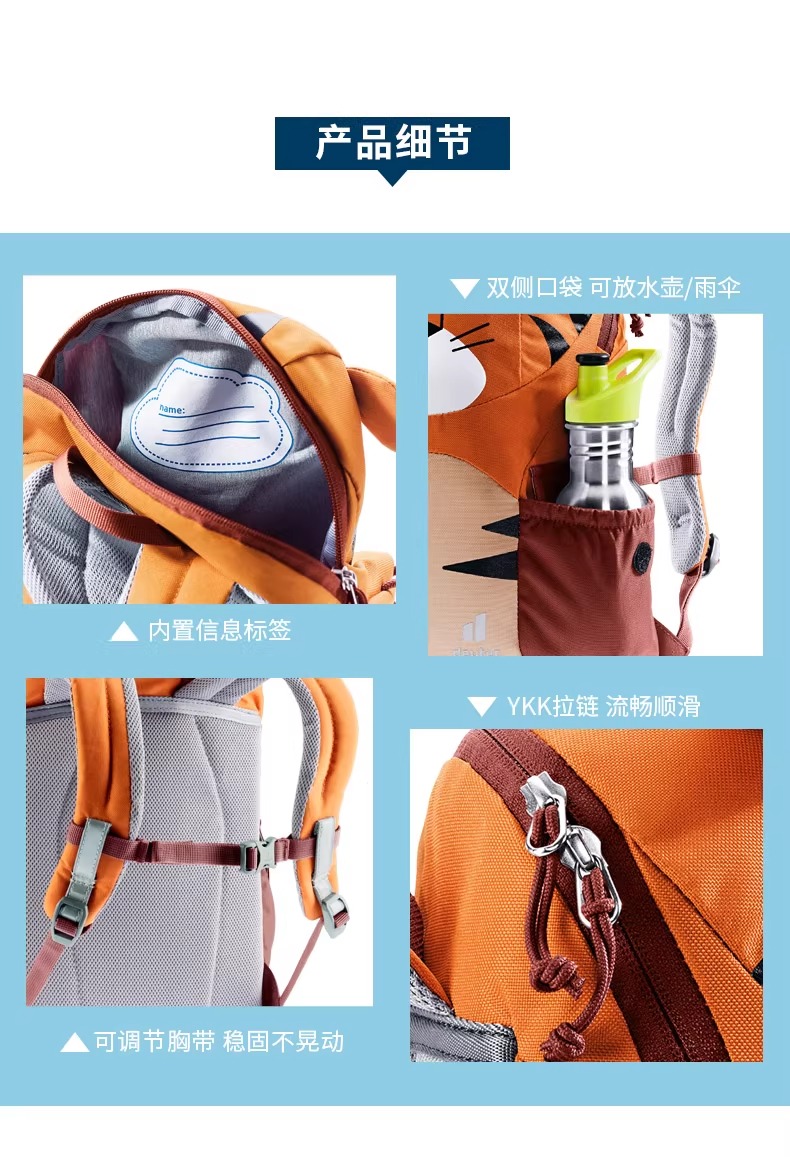 deuter多特 双肩背包 德国琦琦KIKKI卡通户外双肩背包 儿童护脊双肩包 橘色老虎/8L 3610423
