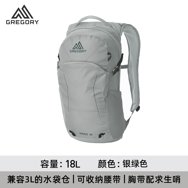 GREGORY格里高利 NANO蜂鸟18L 户外徒步登山包轻便旅行双肩背包 银绿色 轻量设计 隔层巧妙
