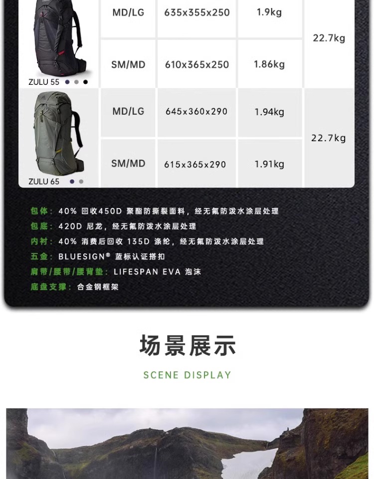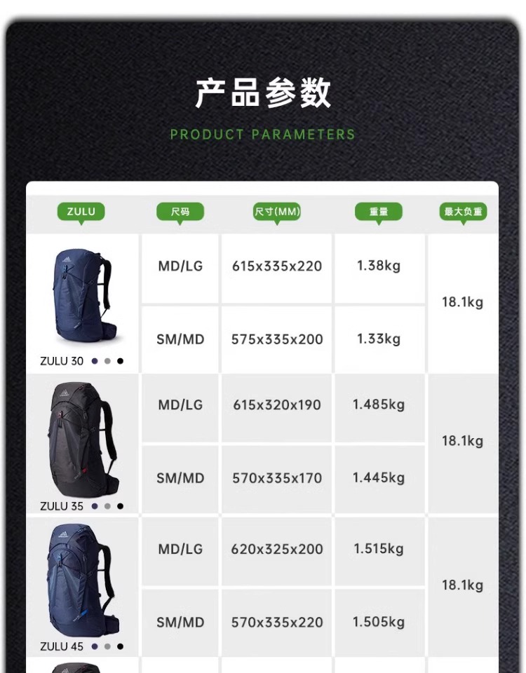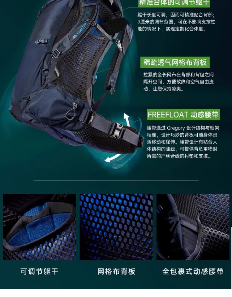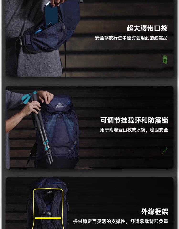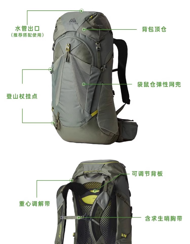 Gregory格里高利ZULU探迹 专业重装透气户外登山背包徒步双肩包男