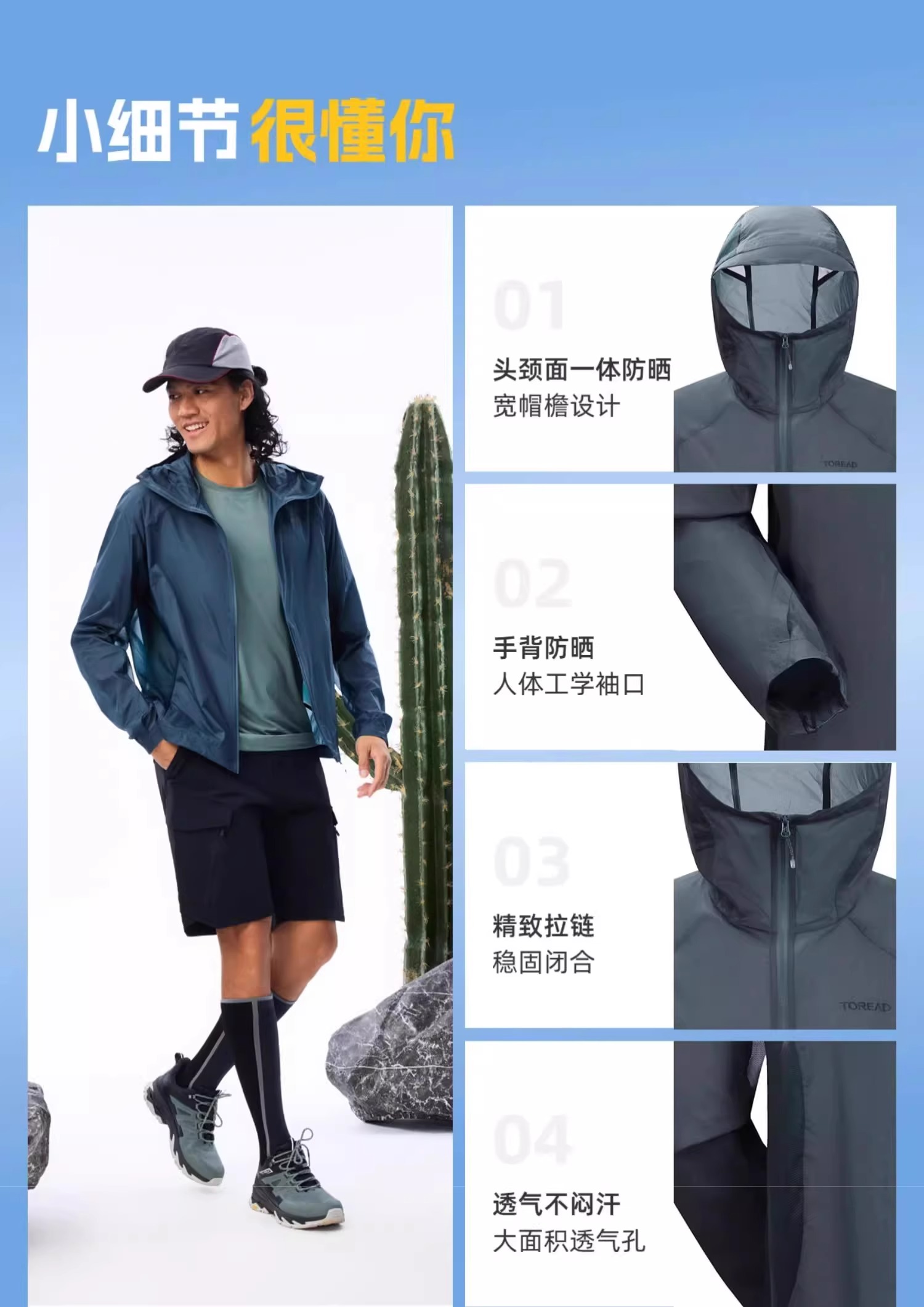 探路者防晒衣男夏季户外UPF50+防紫外线