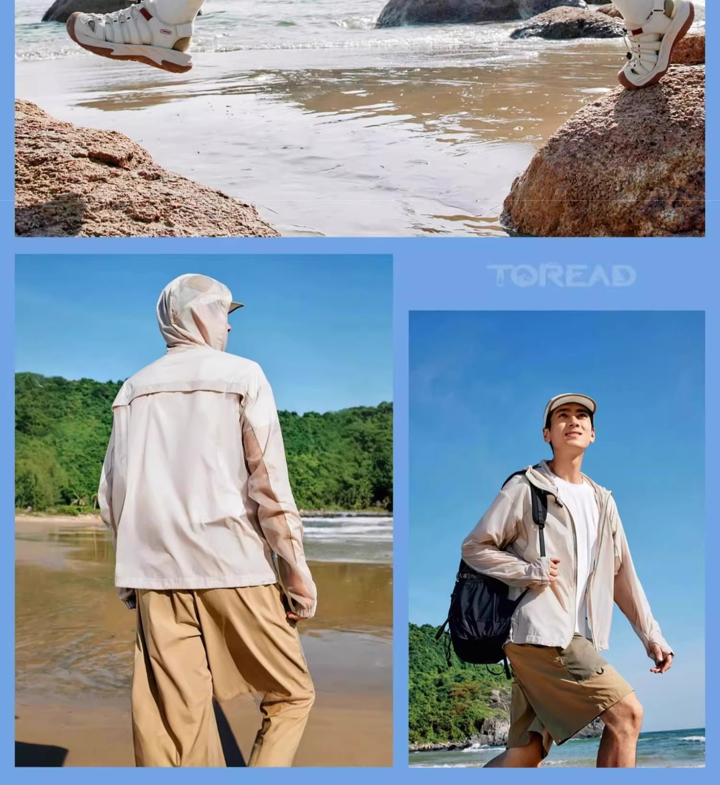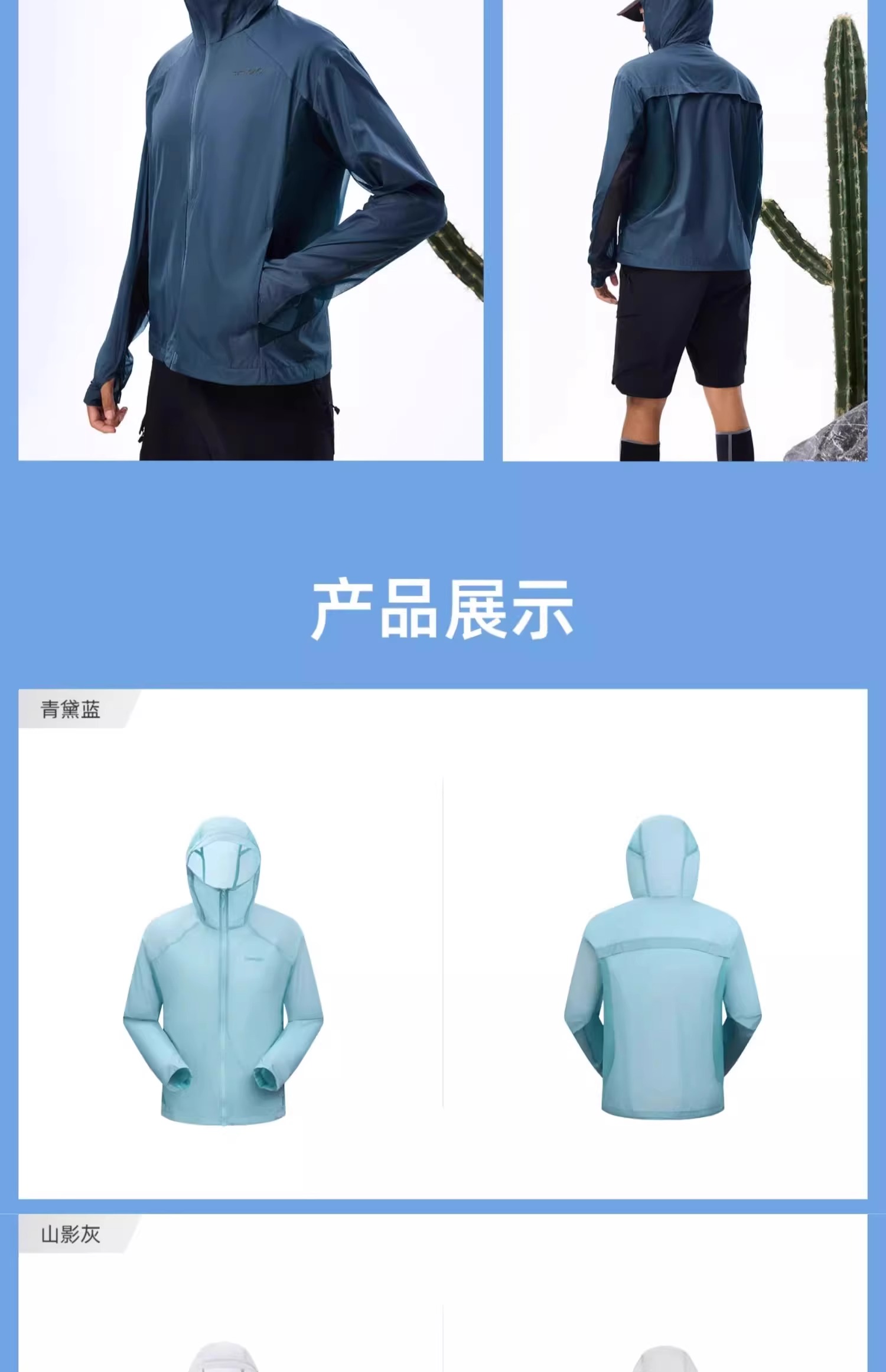 探路者防晒衣 男夏季户外UPF50+防紫外线 防晒服钓鱼服 TAZZBN81729青黛蓝 薄款透气 干爽遮阳