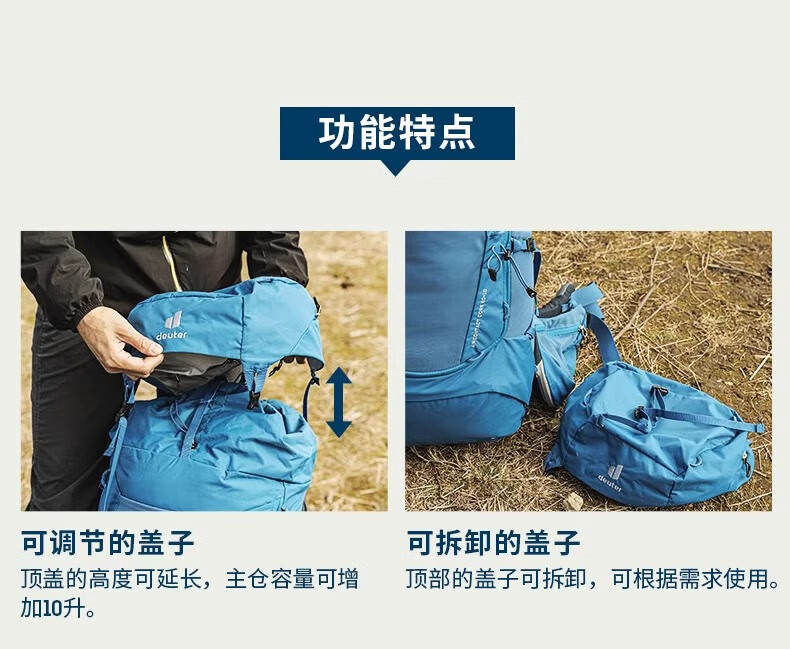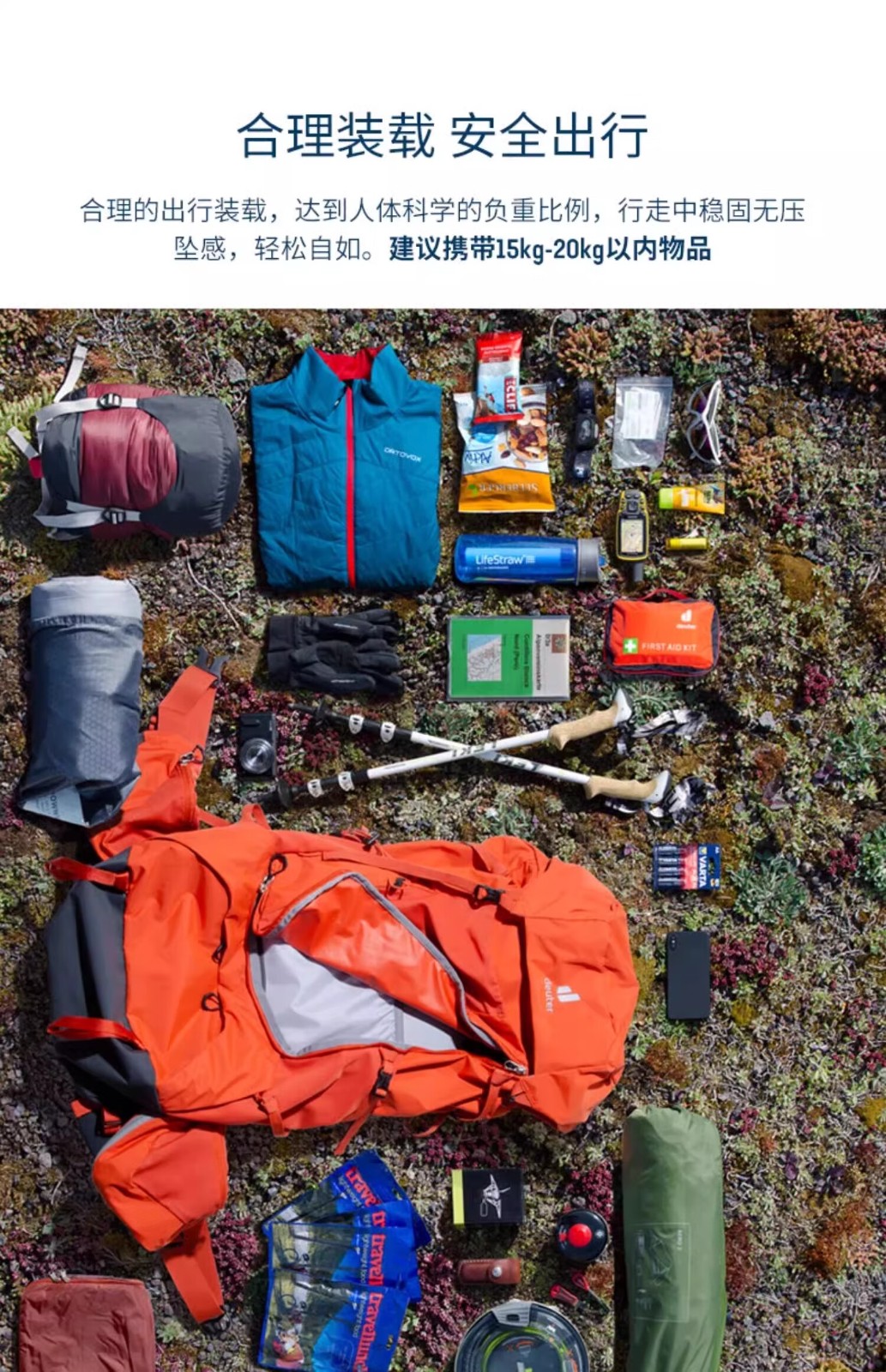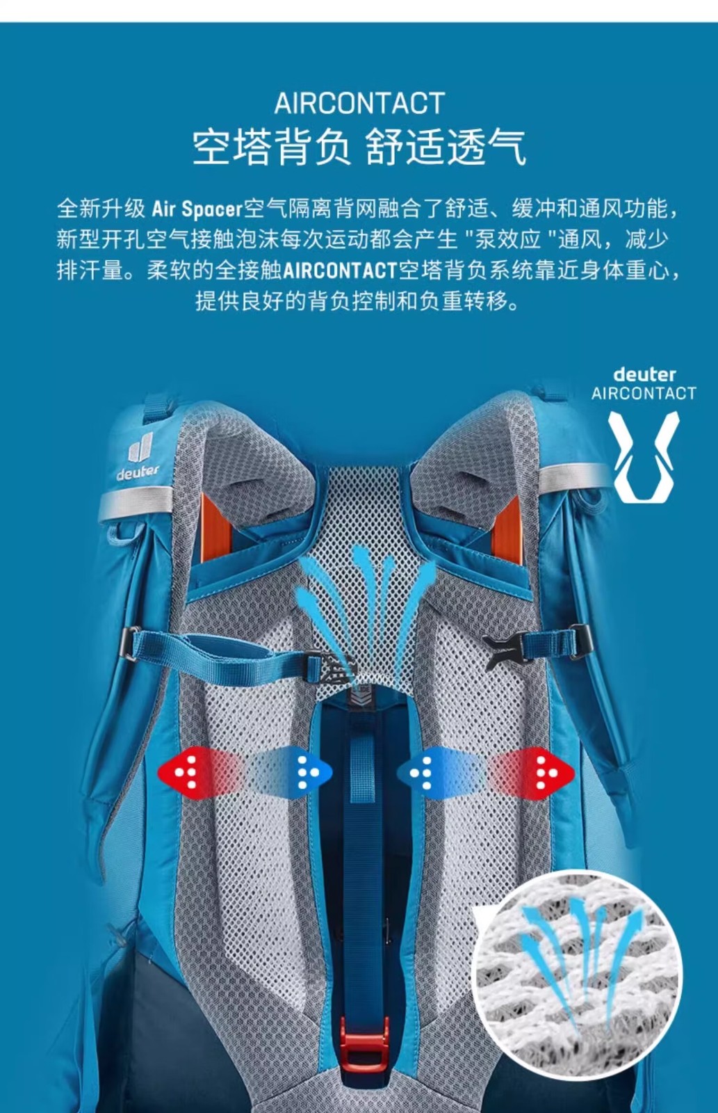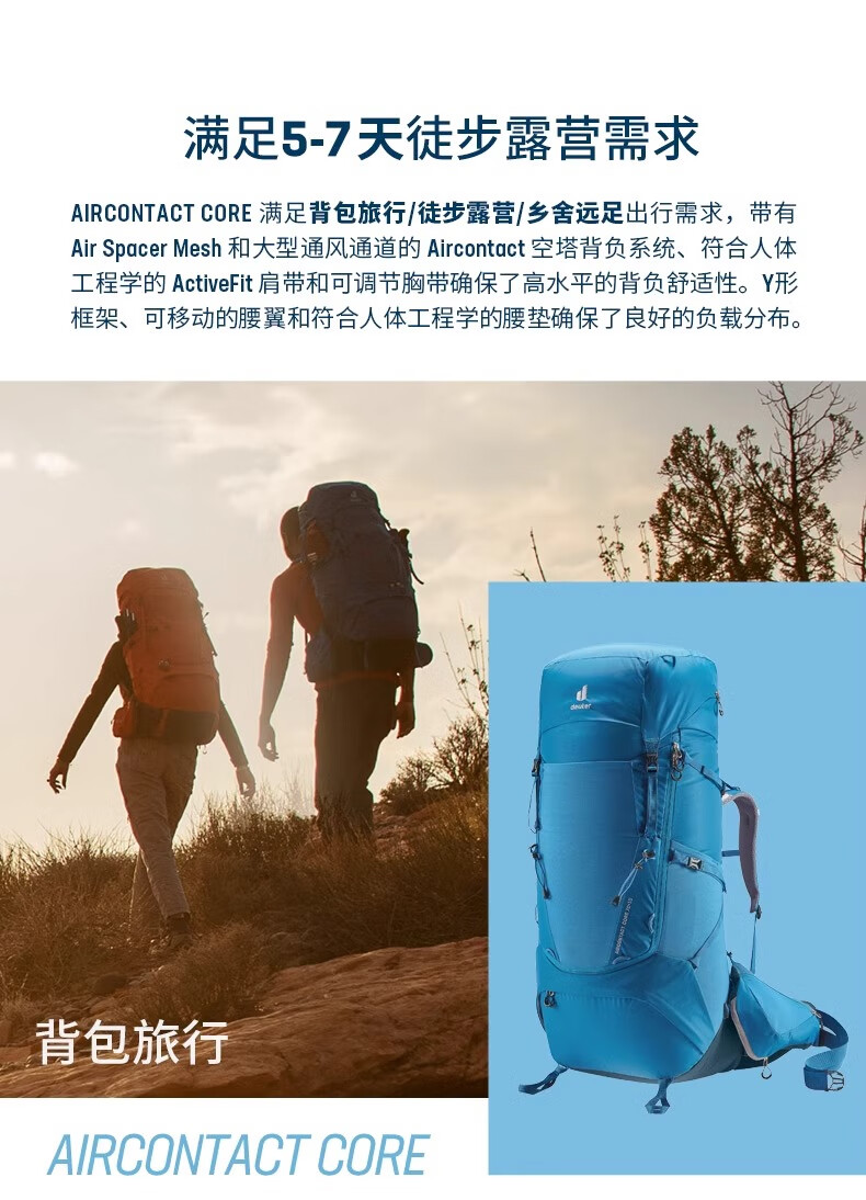 deuter多特 征途CORE 60+10L背包 多日徒步露营登山包重装双肩背包男女款大容量 大西洋蓝 舒适透气 Y形支撑架 稳定贴合 稳定负载