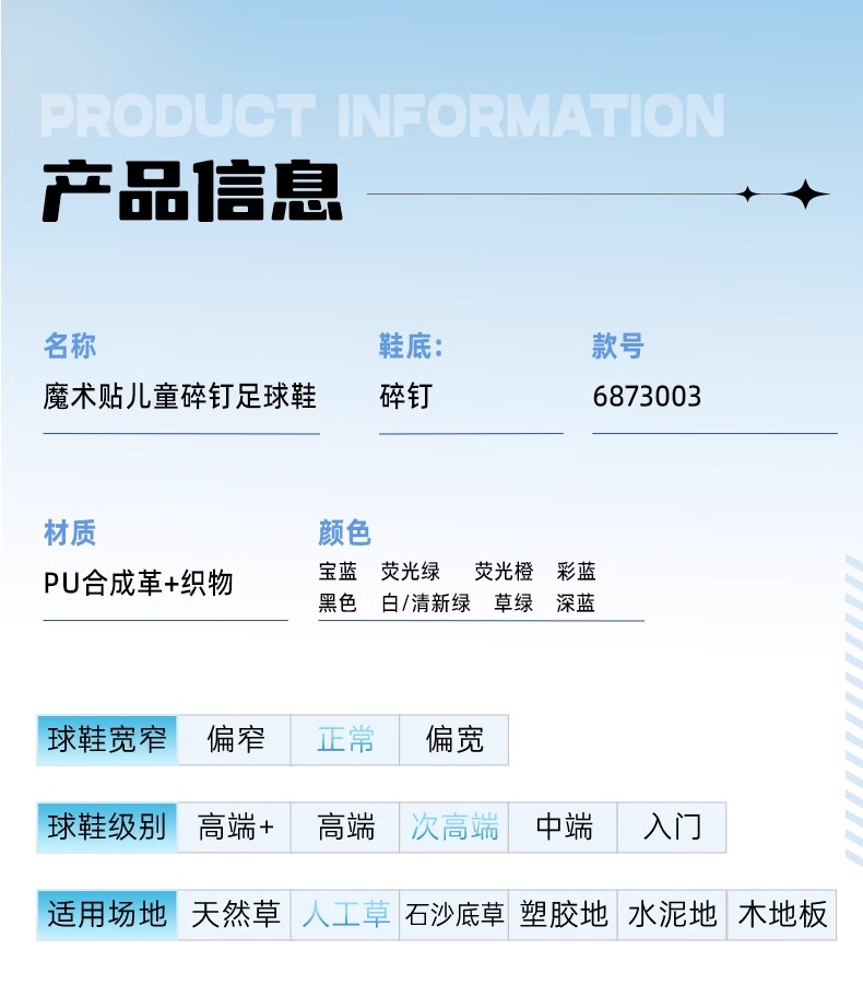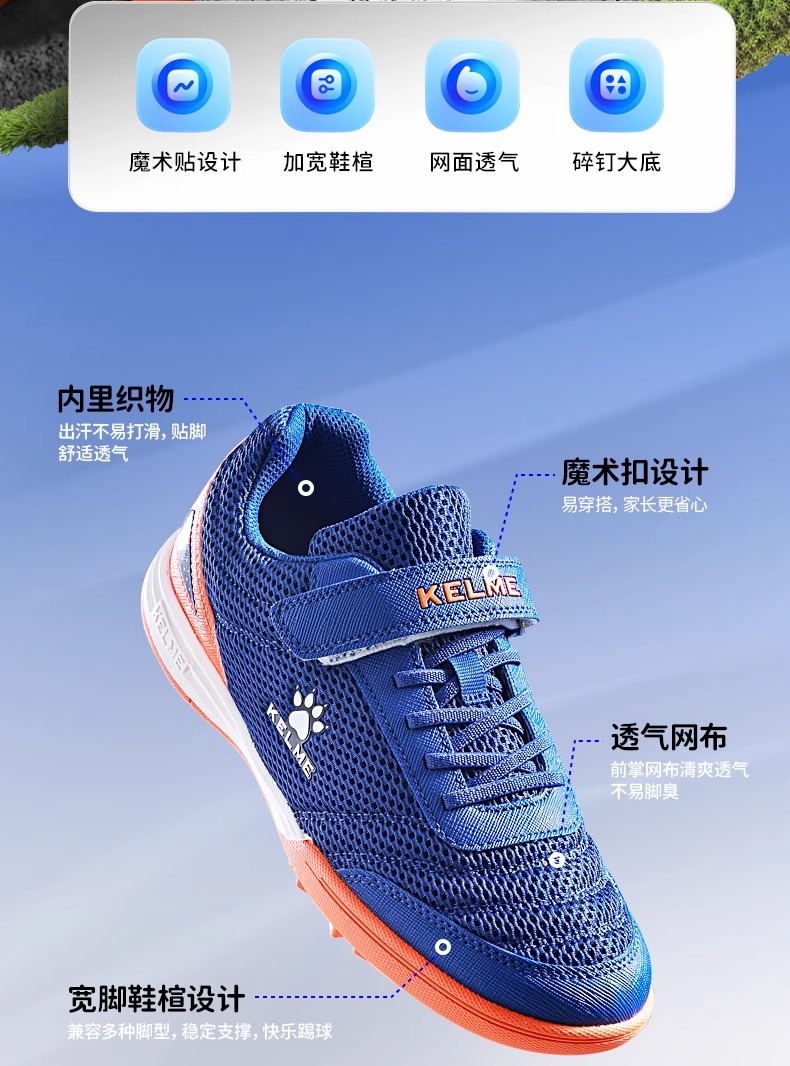 卡尔美星芒1.0儿童魔术贴足球鞋