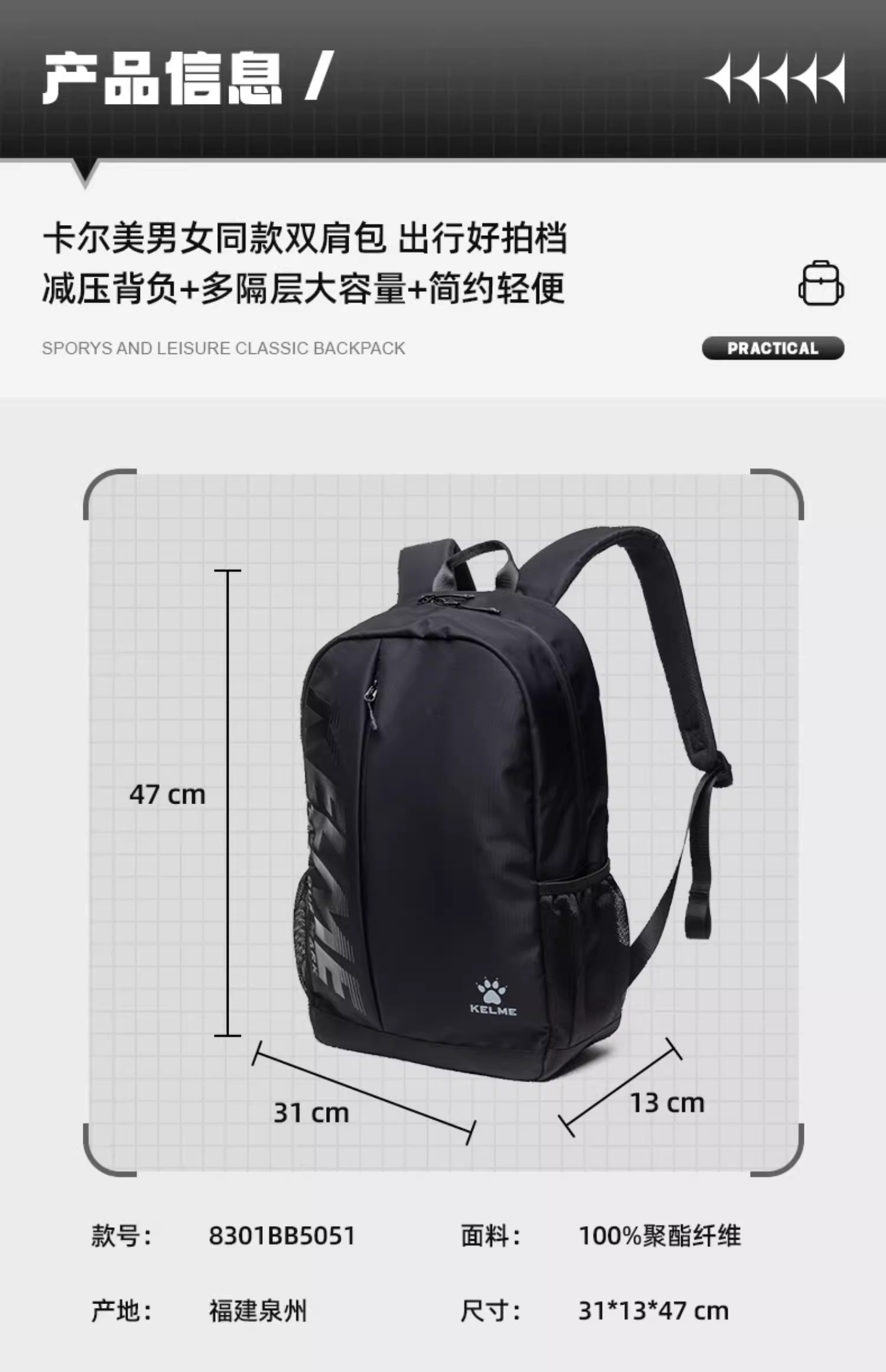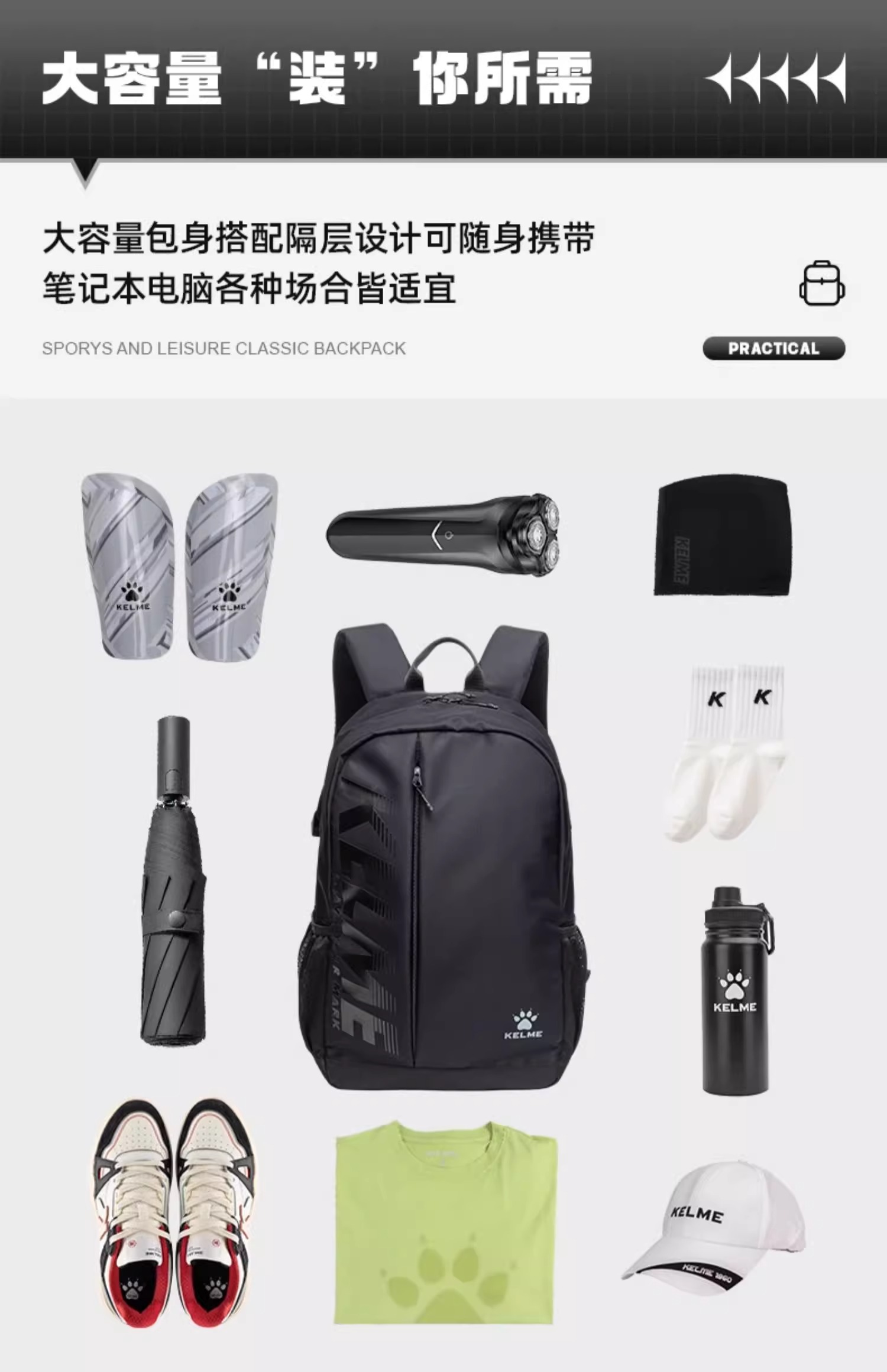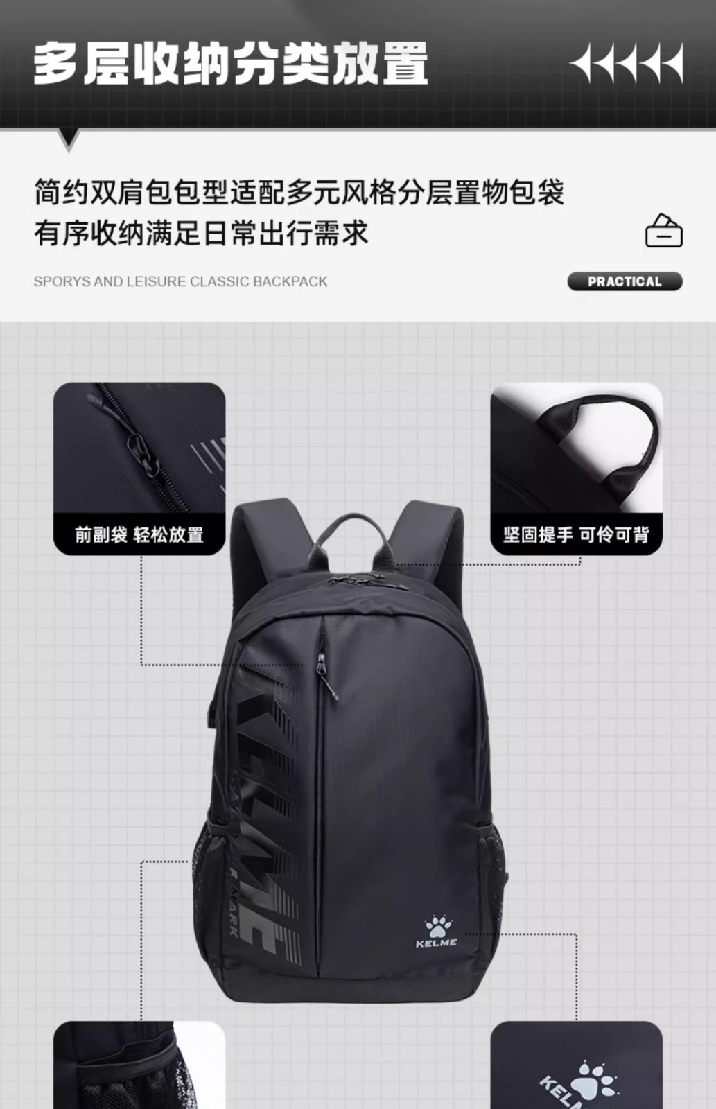 KELME卡尔美 双肩背包男女大容量轻便旅行运动背包 8301BB5051均码 超大容量 功能实用