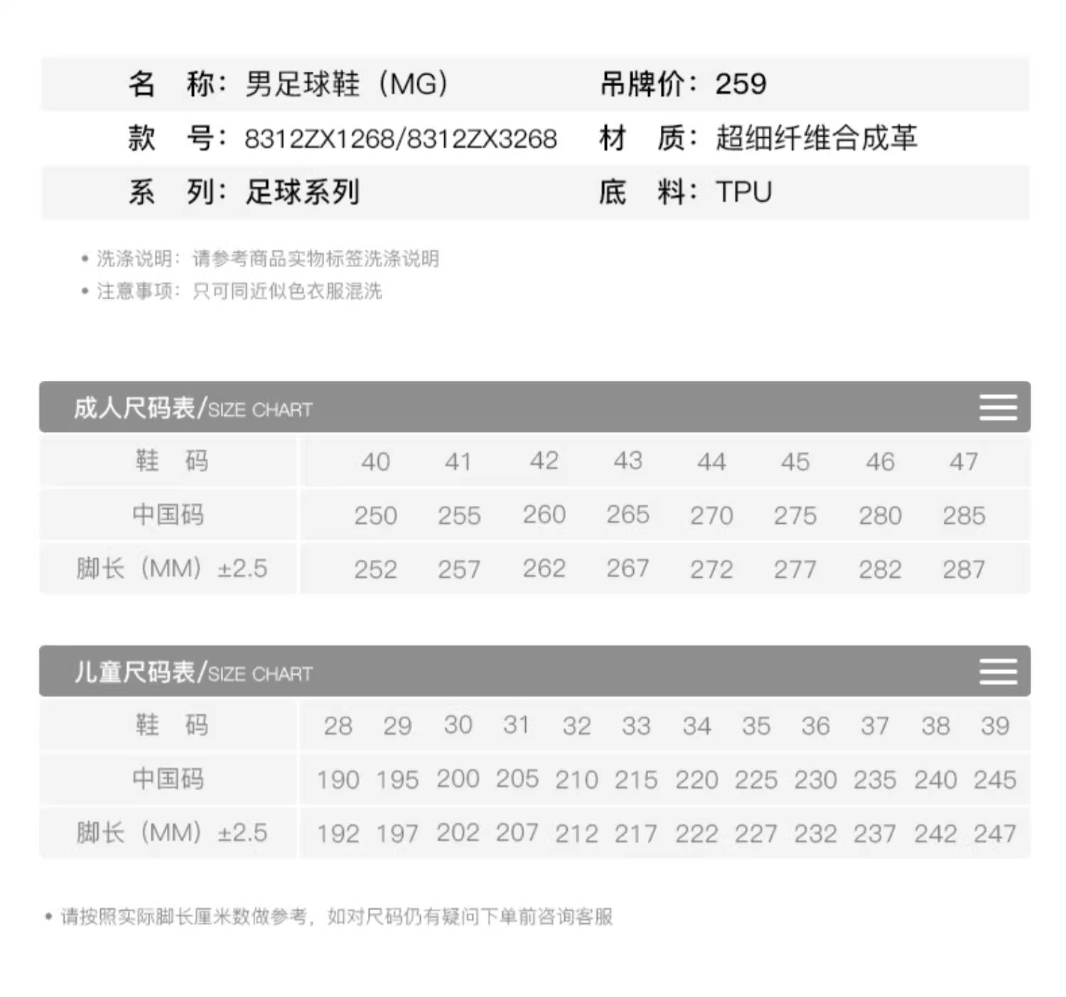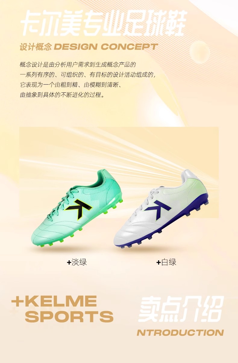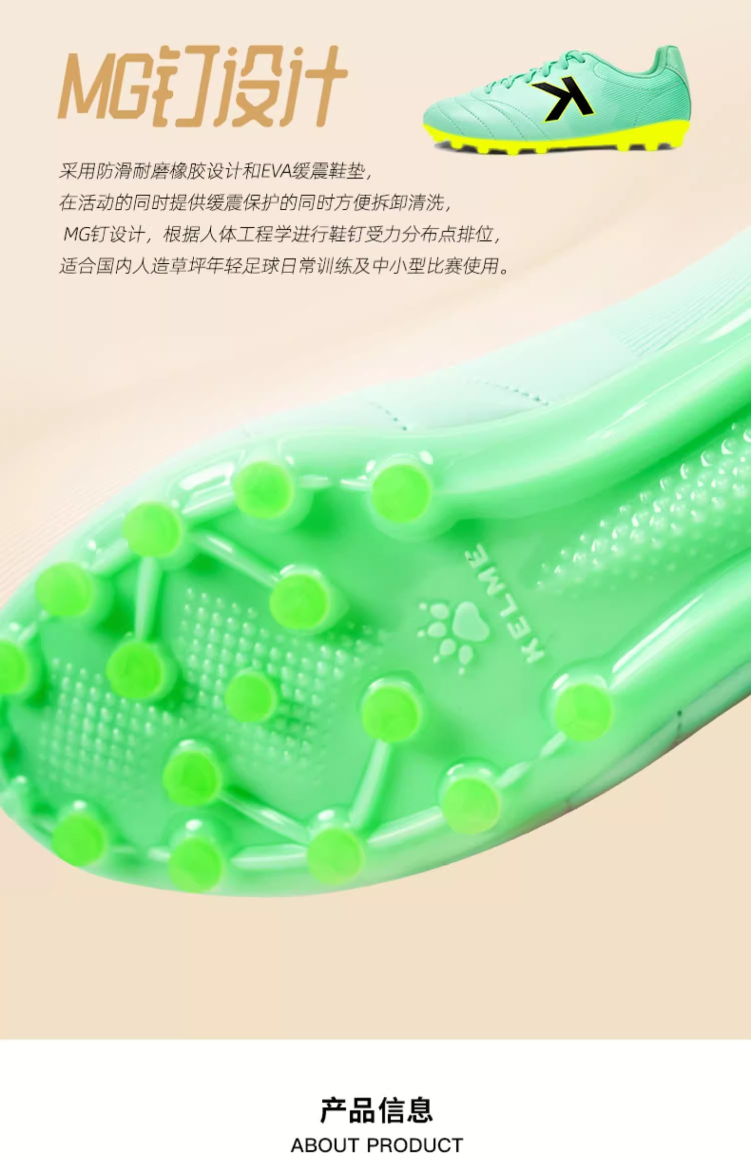 MG(混合钉)大底:前掌密集碎钉+后跟短钉设计,室内外人造草、硬地通吃,急停不滑步。