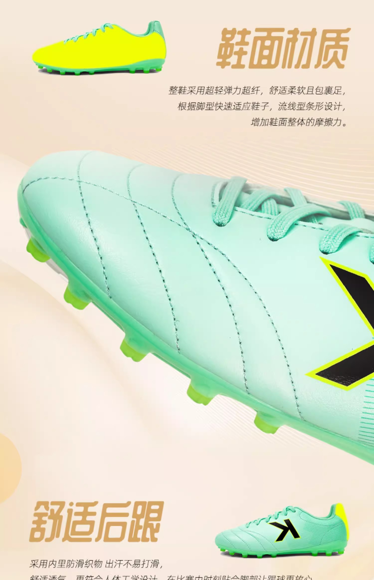 弹力超纤鞋面:柔软贴合,停球不震脚,长传摆腿顺畅。