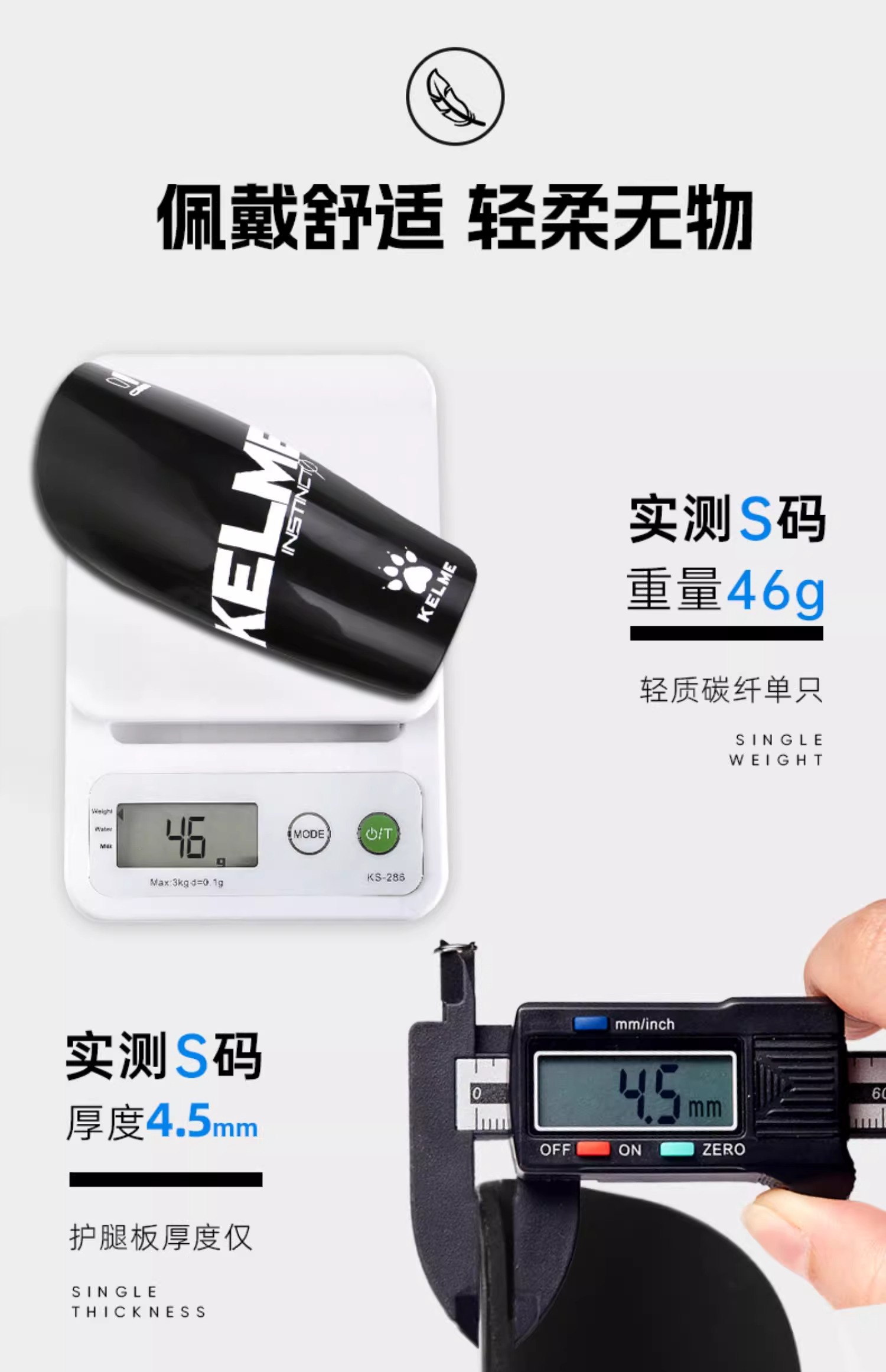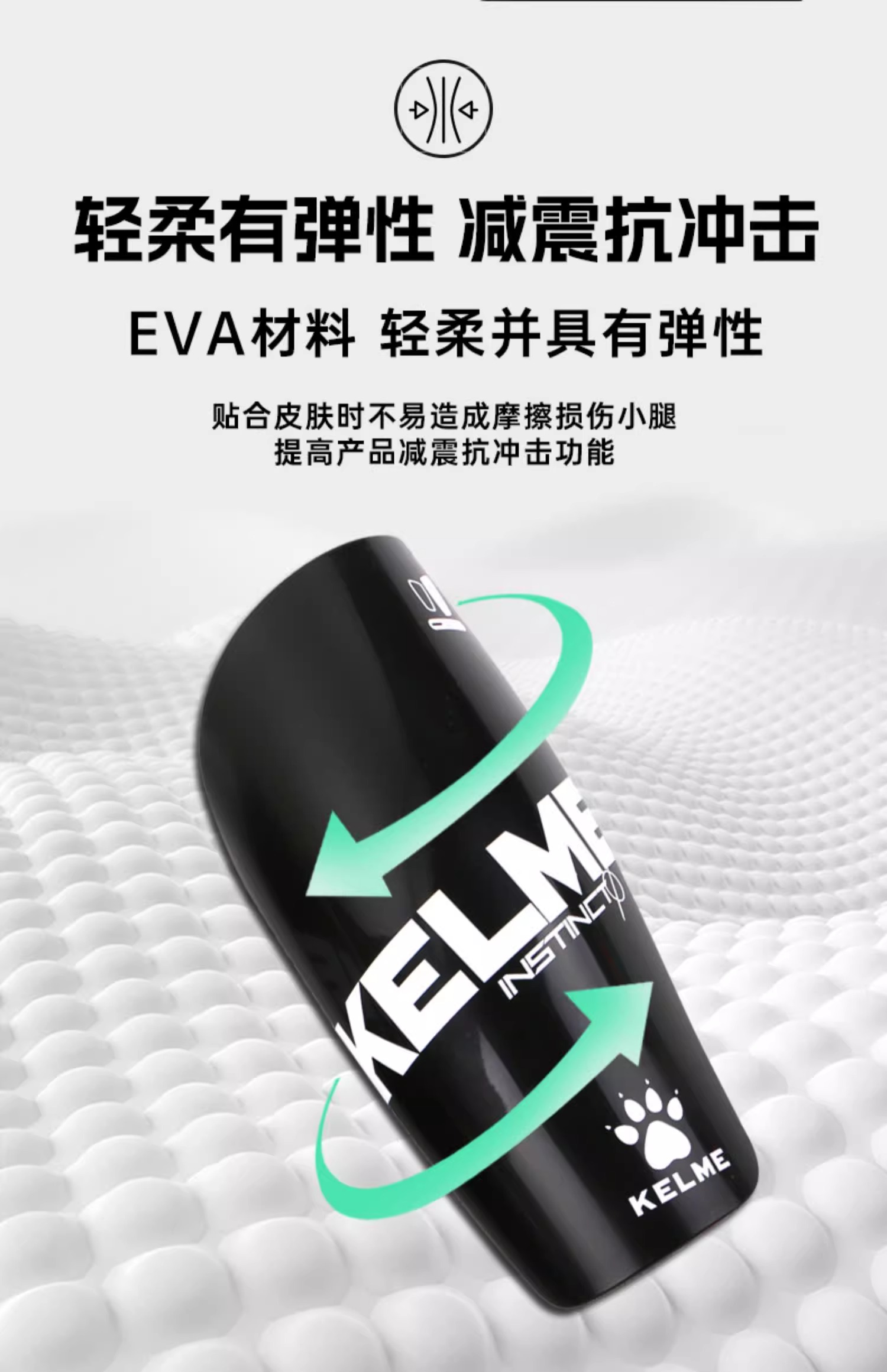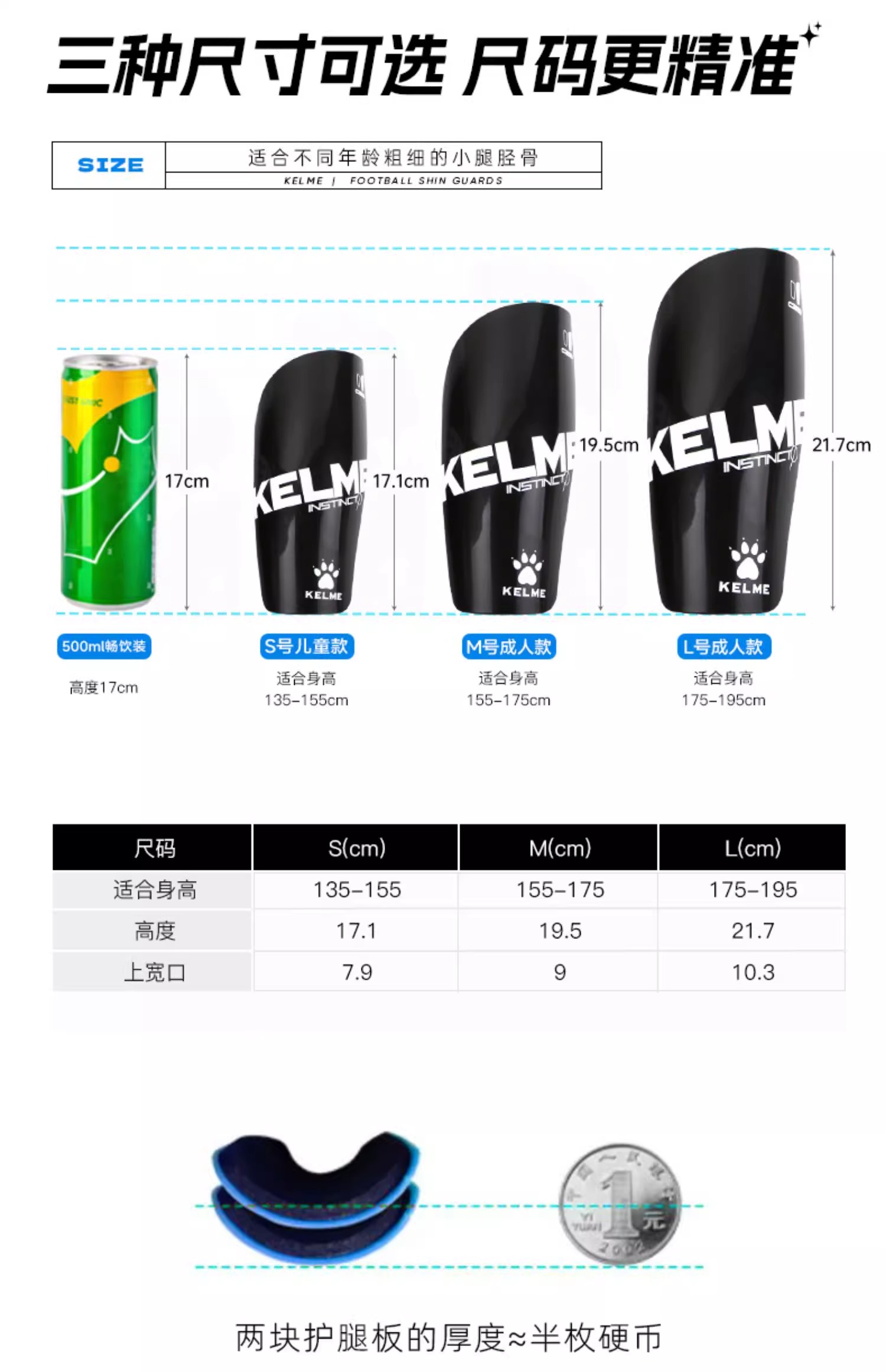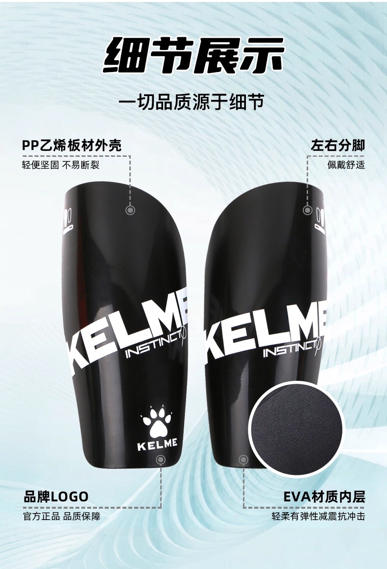 KELME卡尔美 青少年专业训练比赛足球护腿板 成人保护小腿插板护具 K15S948黑白 轻质坚固 减震防撞