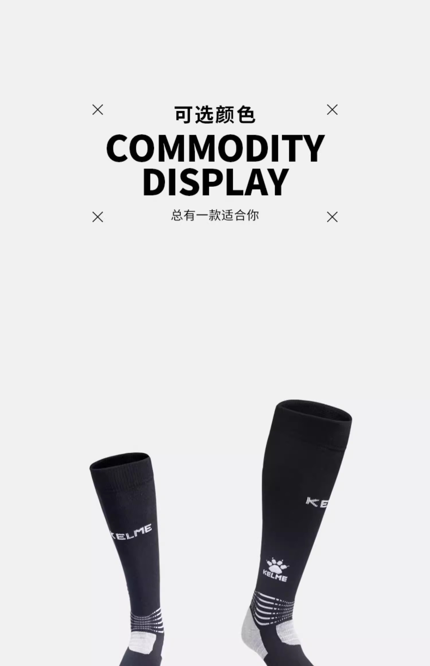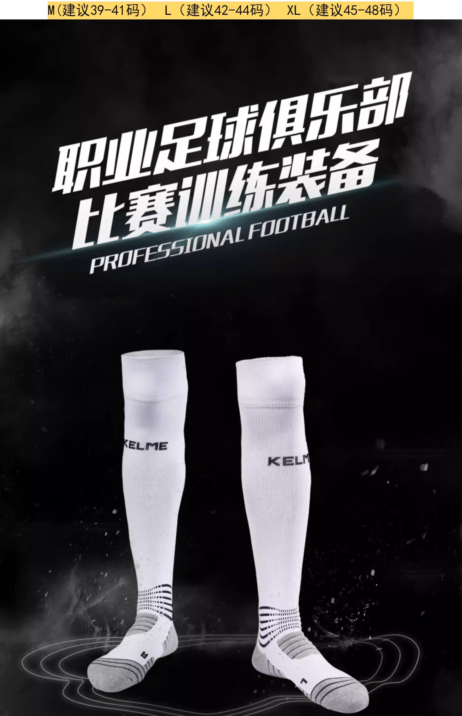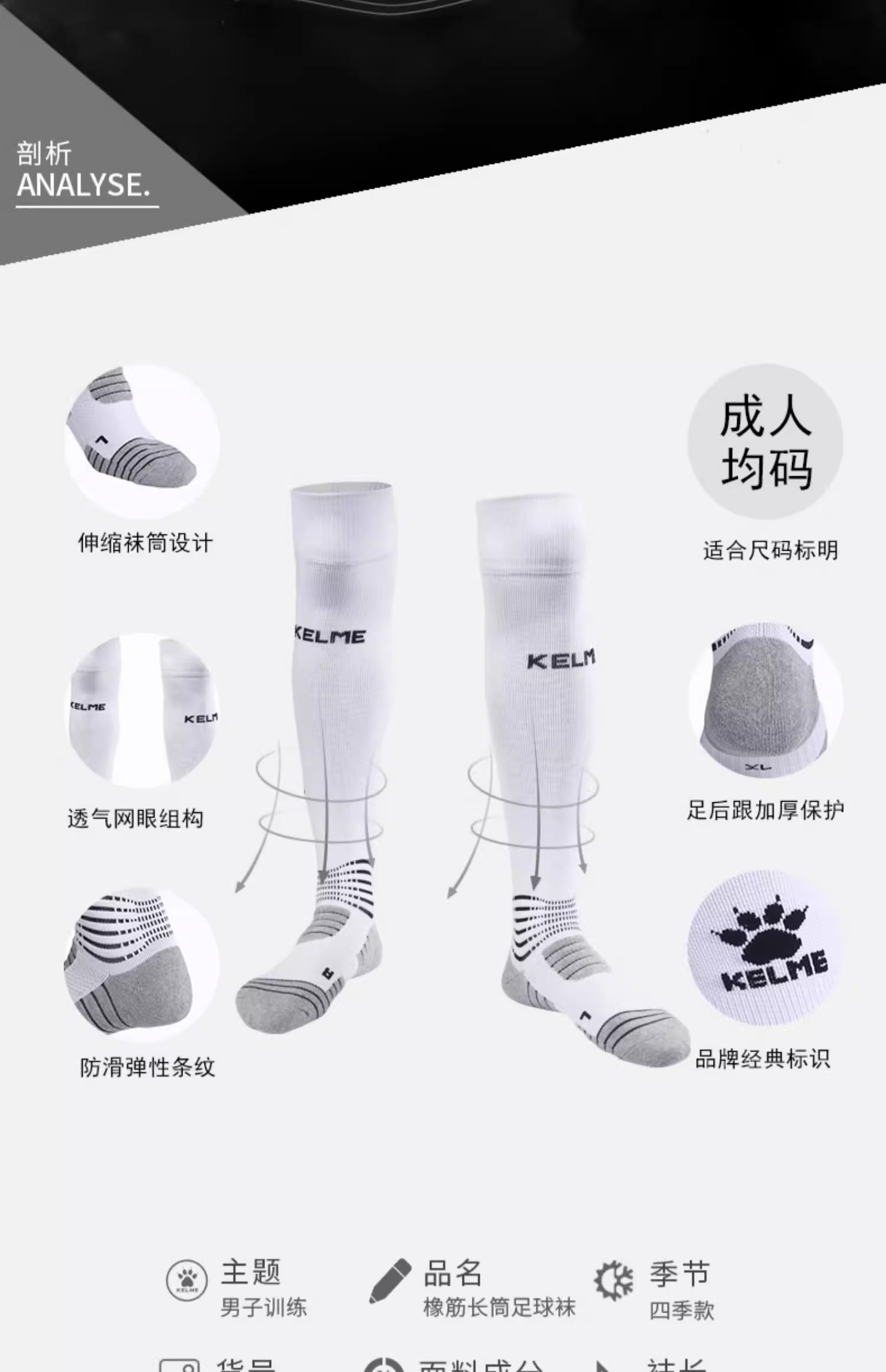 KELME卡尔美 橡筋长筒足球袜 过膝跑步篮球足球比赛训练吸汗袜子 9876312白黑 吸汗防滑 保持干爽