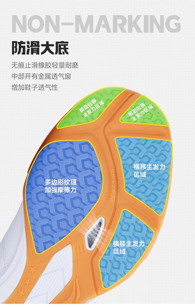 大底是 NON - MARKING 无痕止滑橡胶