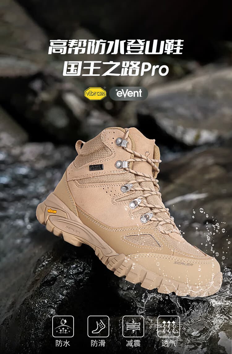 思凯乐 【国王之路2.0】户外徒步登山鞋 专业户外徒步鞋男防水防滑高帮防崴脚沙漠靴登山鞋 X9812369 沙色 防臭吸湿 超强抓地力 柔韧防滑