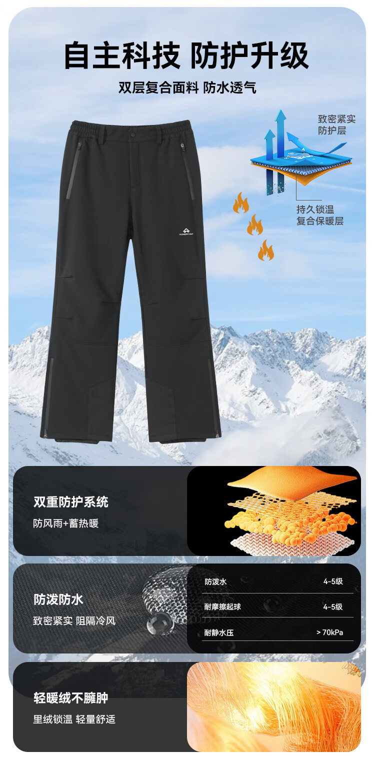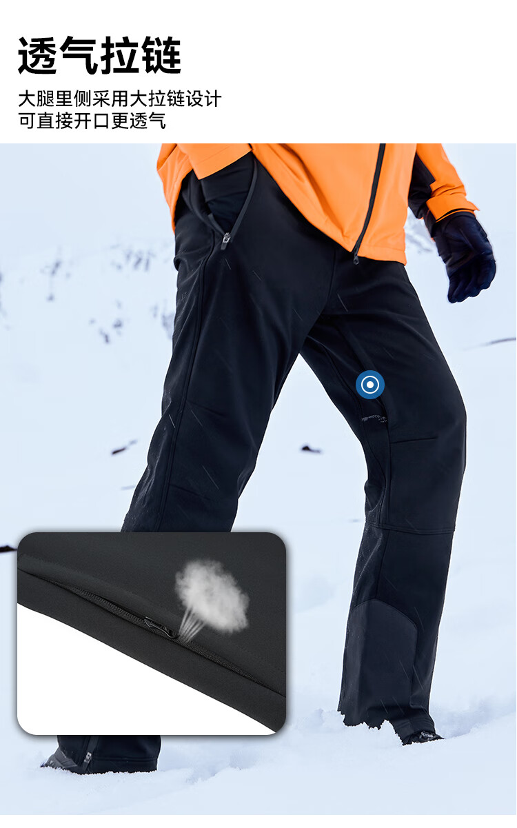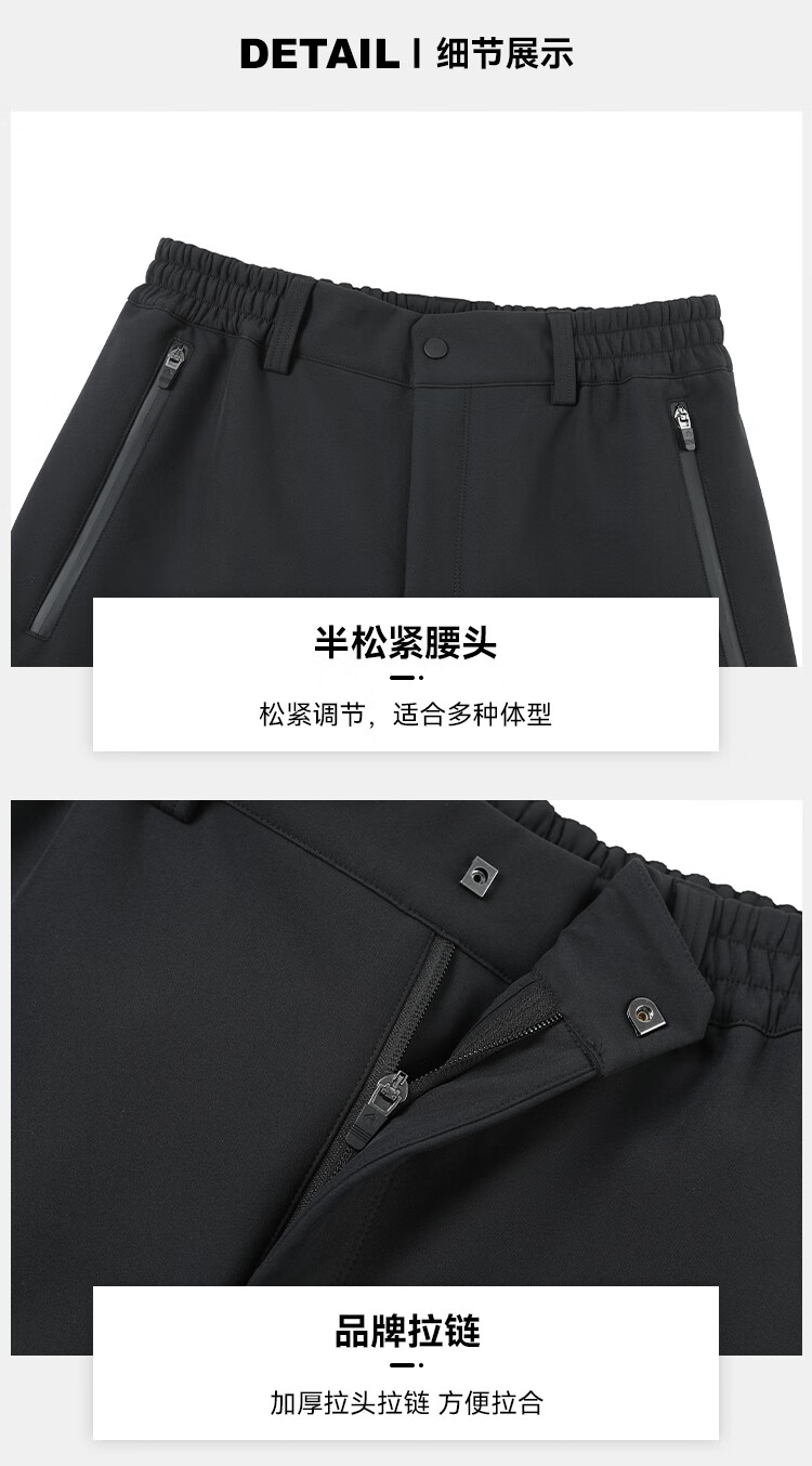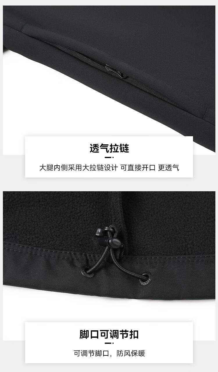 拓路者 户外直筒软壳裤 滑雪裤男脚口拉链登山裤耐磨防水裤子软壳裤冬季保暖宽松直筒 XHX311013L 黑色 防泼耐磨 蓄热保暖 亲肤透气