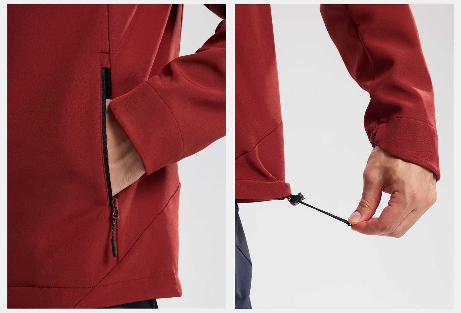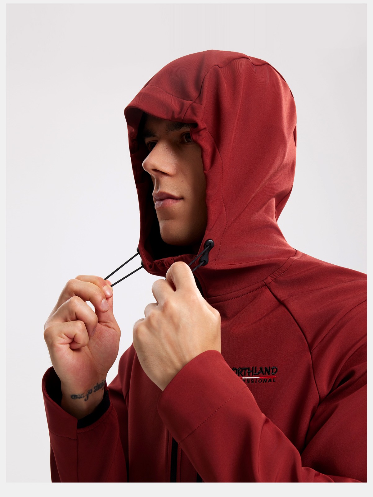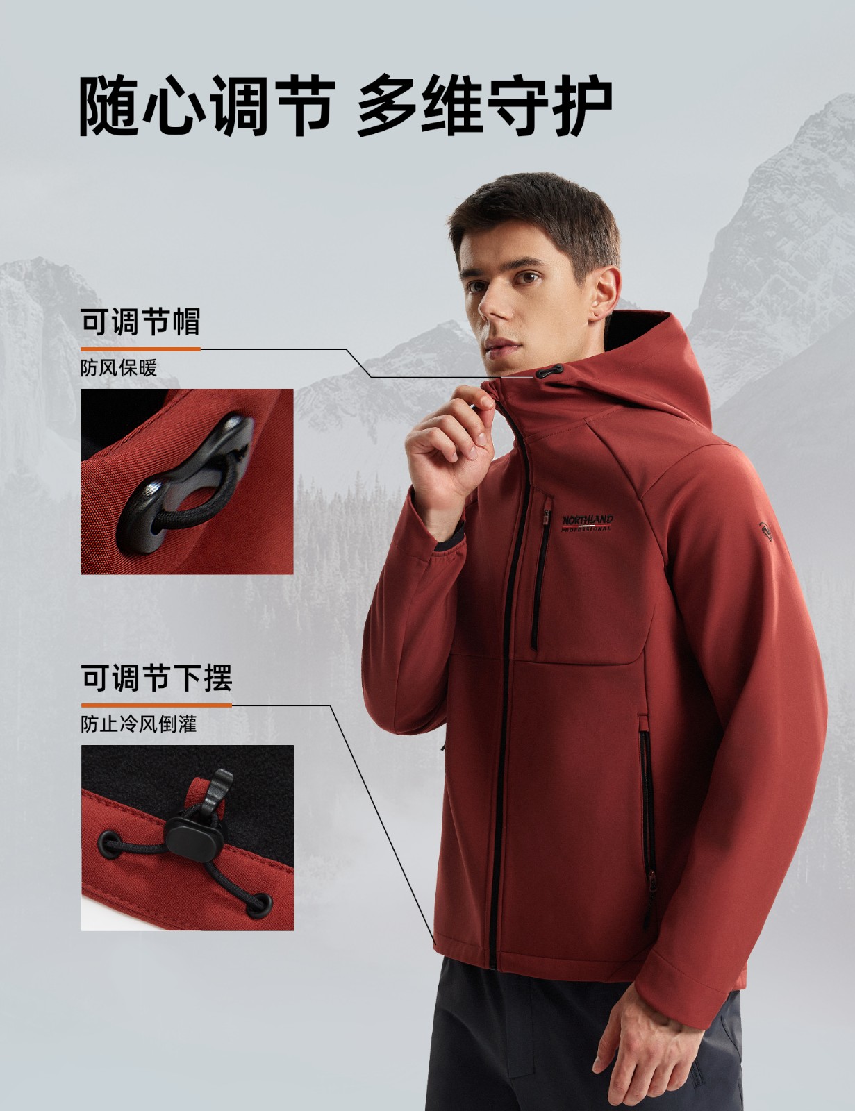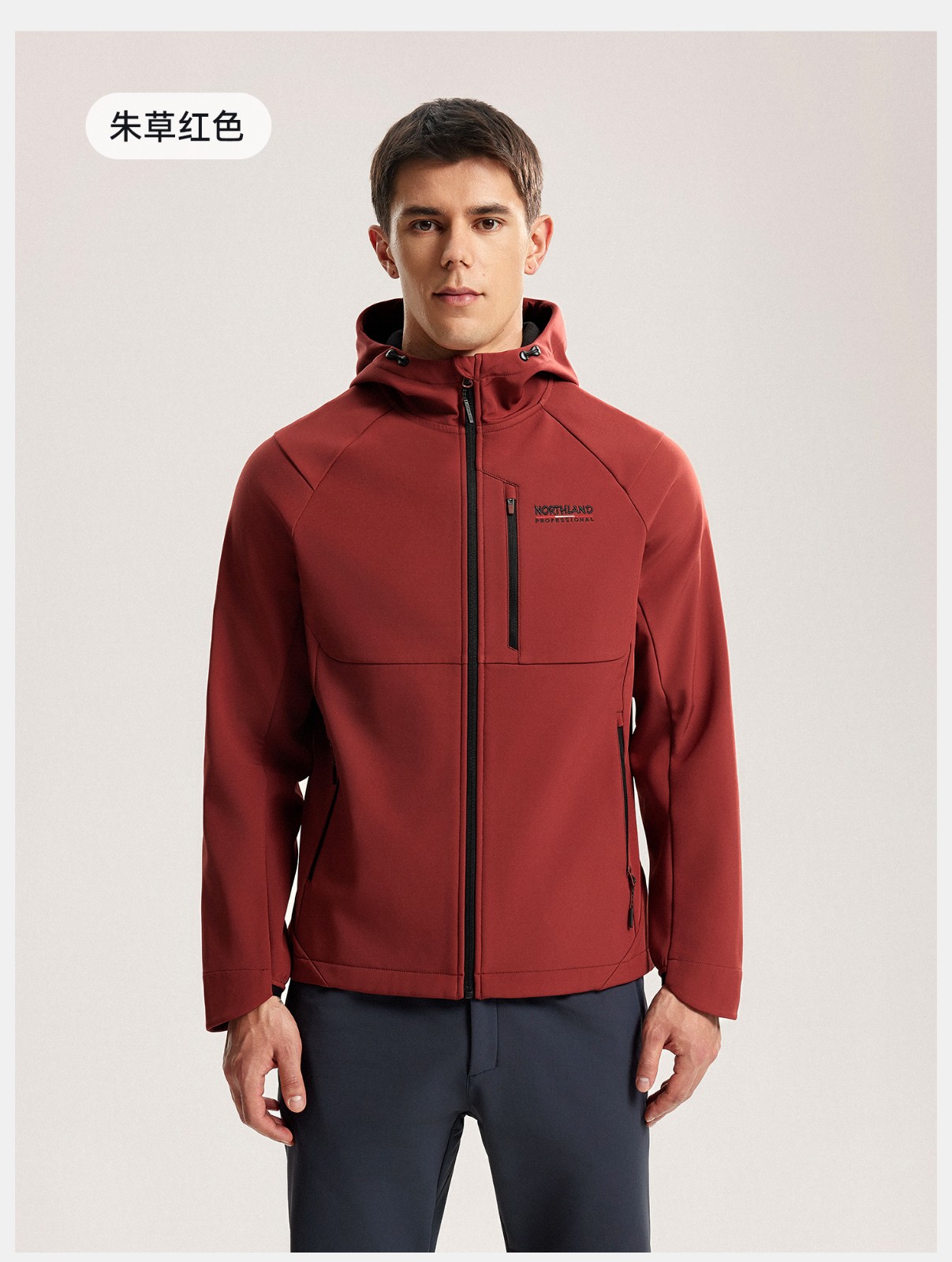 诺诗兰 加绒软壳衣 防风防泼水保暖连帽徒步登山连帽外套男 NXJFT5470E 朱草红色 胸部口袋 便捷存取 三防耐磨 舒适防风