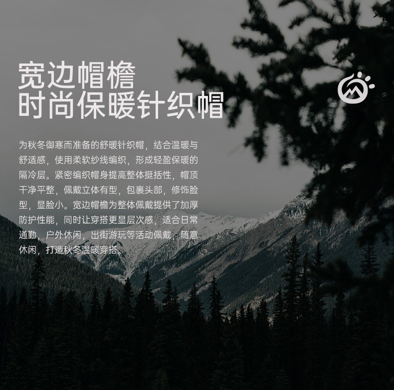 为秋冬御寒而准备的舒暖针织帽,结合温暖与舒适感,使用柔软纱线编织,形成轻盈保暖的隔冷层。紧密编织帽身提高整体挺括性,帽顶干净平整,佩戴立体有型,包裹头部,修饰脸型,显脸小。宽边帽檐为整体佩戴提供了加厚防护性能,同时让穿搭更显层次感,适合日常通勤,户外休闲,出街游玩等活动佩戴,随意休闲,打造秋冬温暖穿搭。