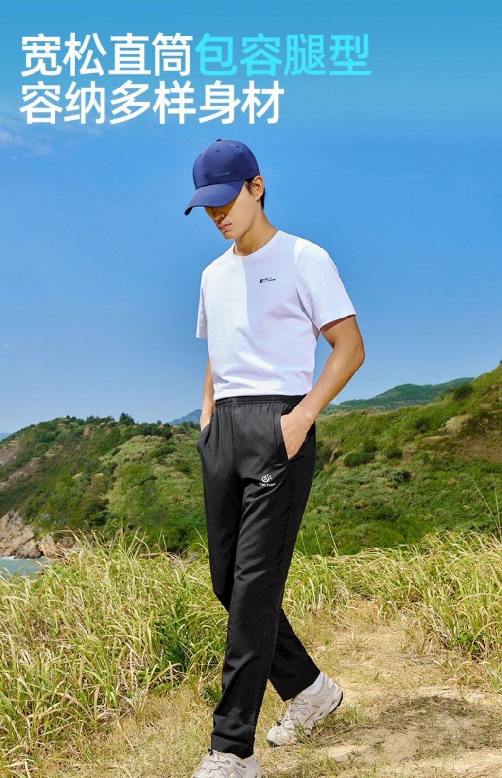 探拓 户外快干裤 徒步登山裤冲锋裤运动宽松透气跑步训练长裤男款 PS7053-4 黑色