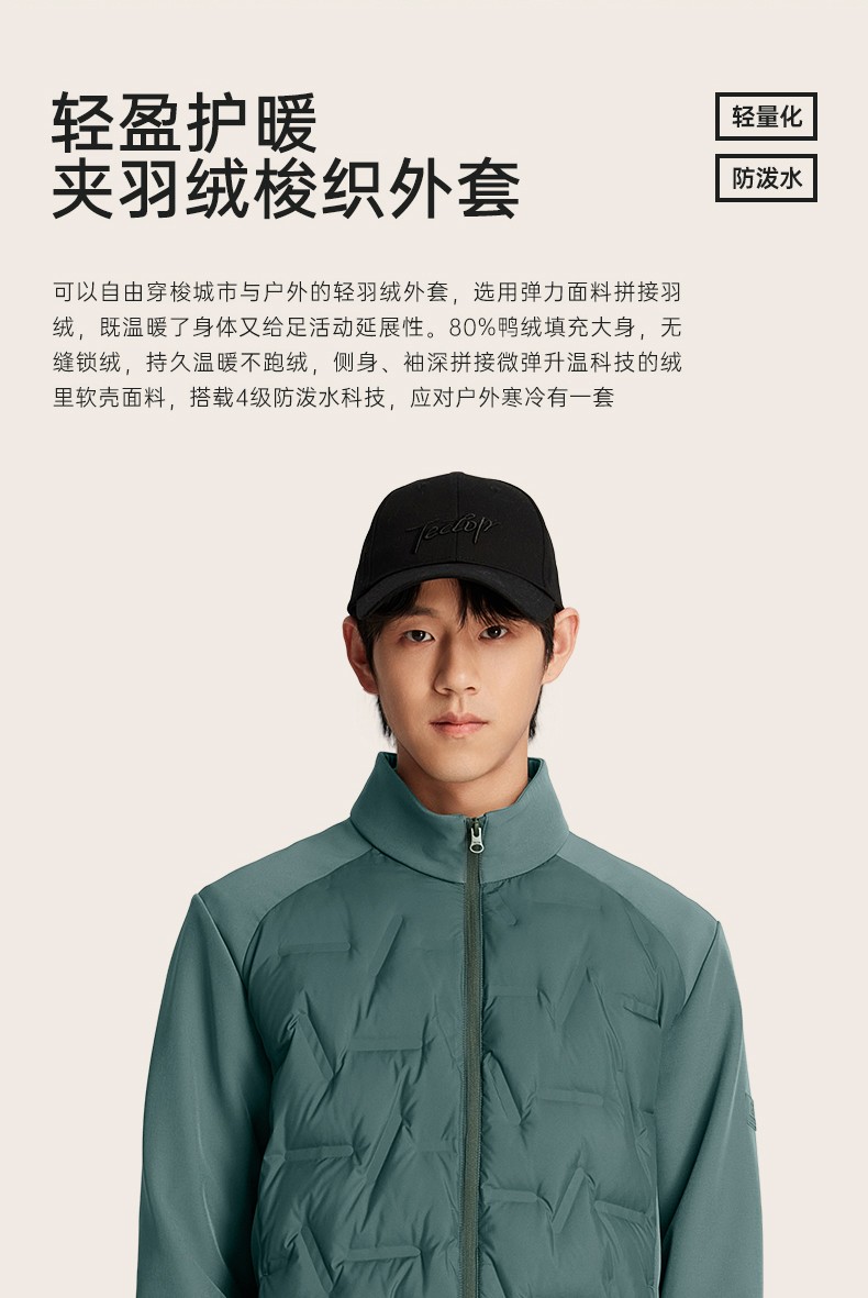 可以自由穿梭城市与户外的轻羽绒外套,选用弹力面料拼接羽绒,既温暖了身体又给足活动延展性。80%鸭绒填充大身,无缝锁绒,持久温暖不跑绒,侧身、袖深拼接微弹升温科技的绒里软壳面料,搭载4级防泼水科技,应对户外寒冷有一套。
