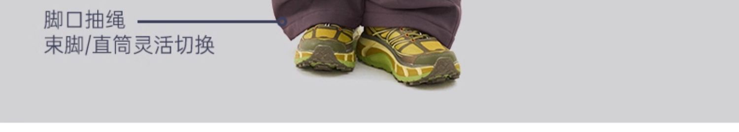 潮流伞兵裤型,结合防风防泼水性能,打造时尚轻户外穿搭,双层复合布面料,适应秋季以及初冬穿着需求,自由行走山野户外之间。