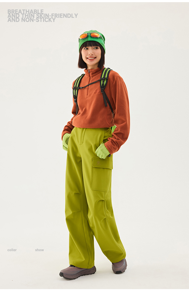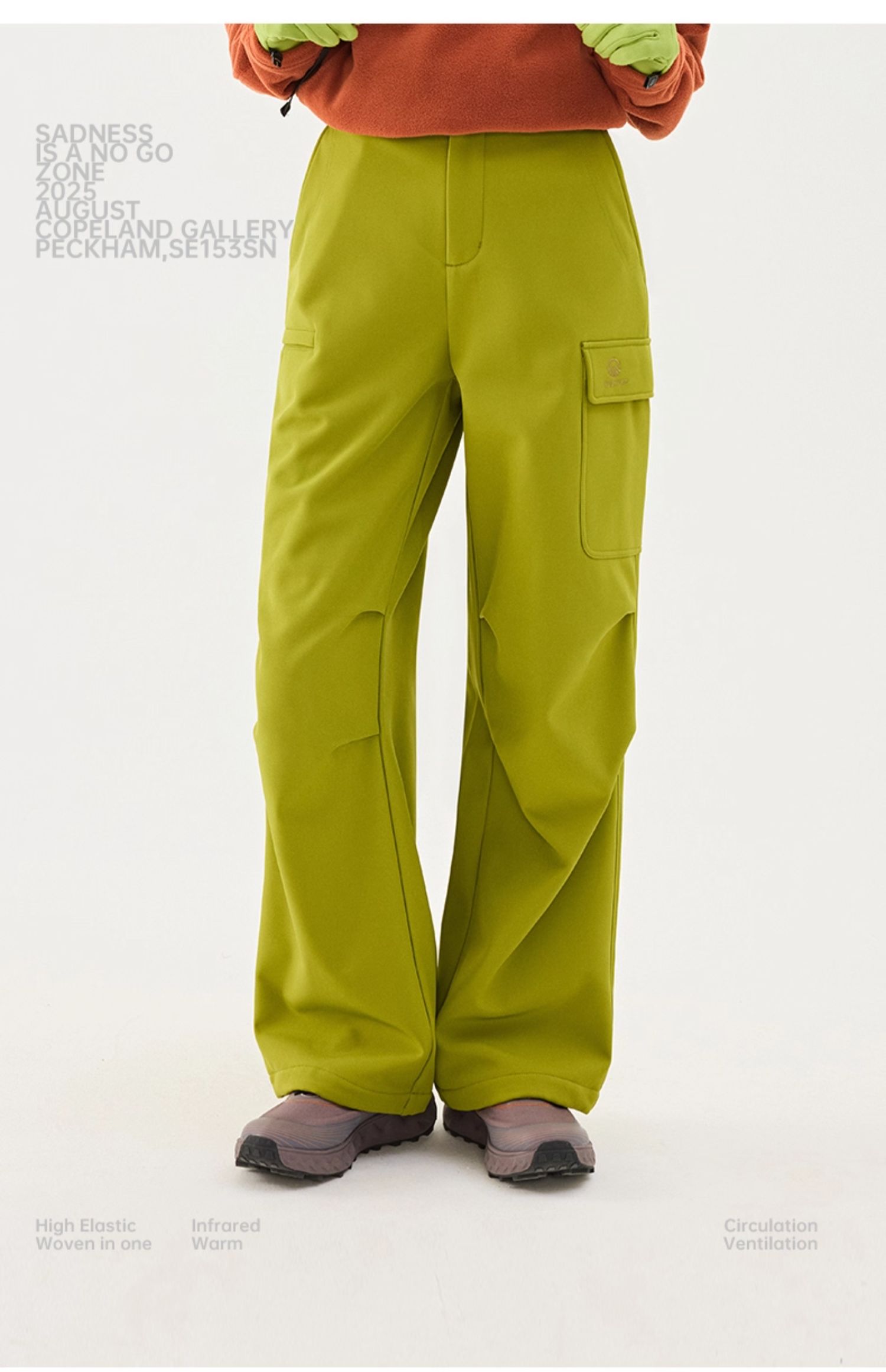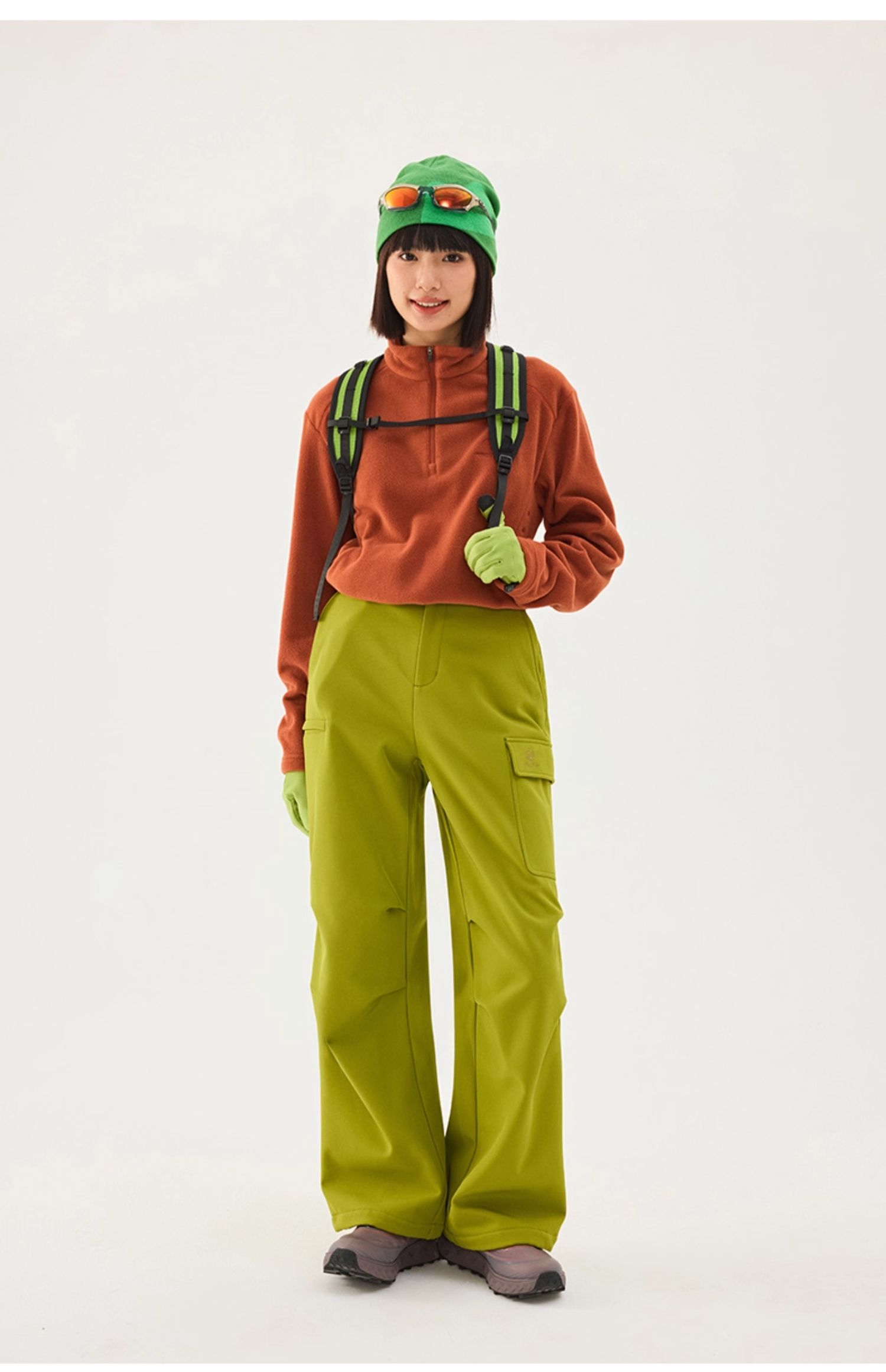 探拓 户外软壳冲锋裤 女士防风防泼水透气徒步登山工装长裤 2537612SZ 果酒绿