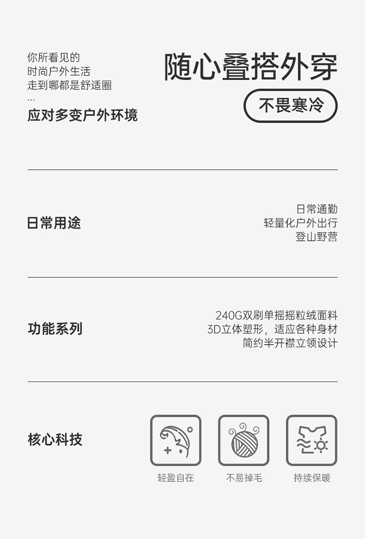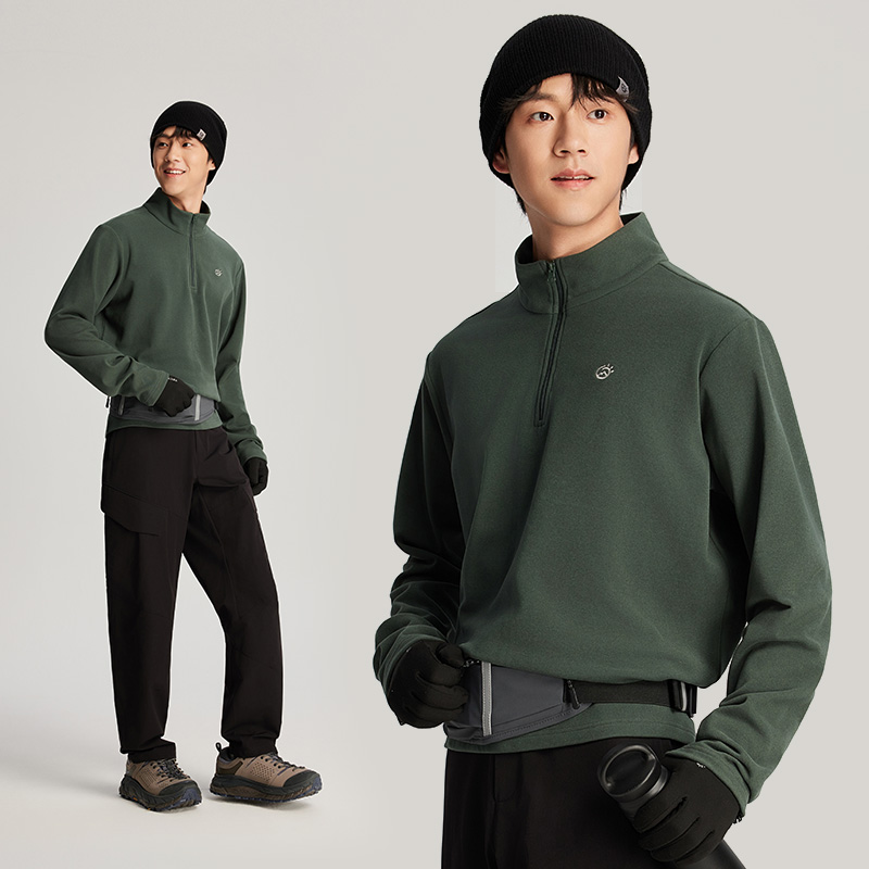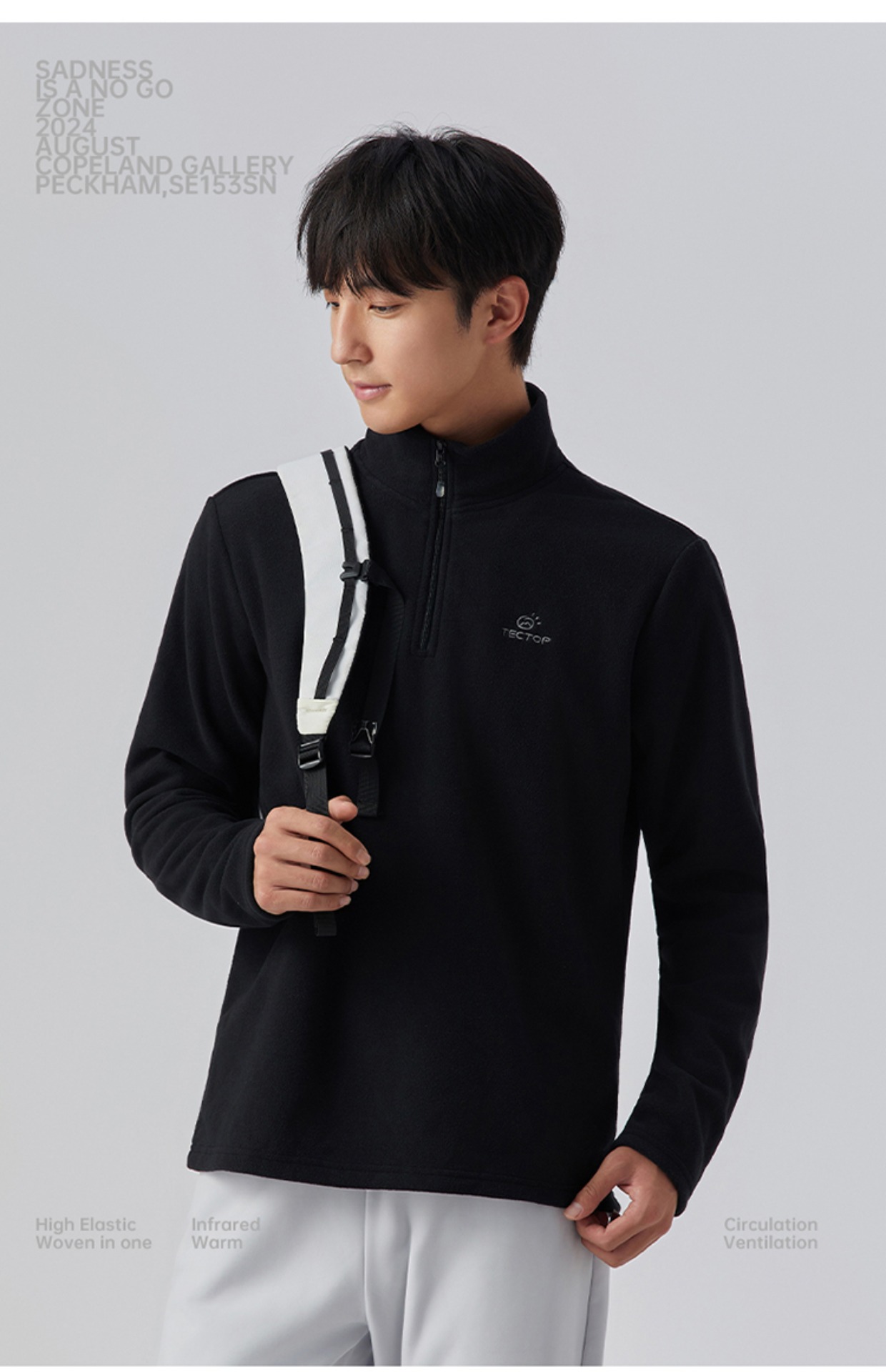 TECTOP探拓 秋冬户外男款抓绒衣 半开衫运动加绒休闲保暖情侣套头抓绒衣 MZRY033-6 经典黑 绒粒细腻 暖绒御寒 耐磨抗拉扯