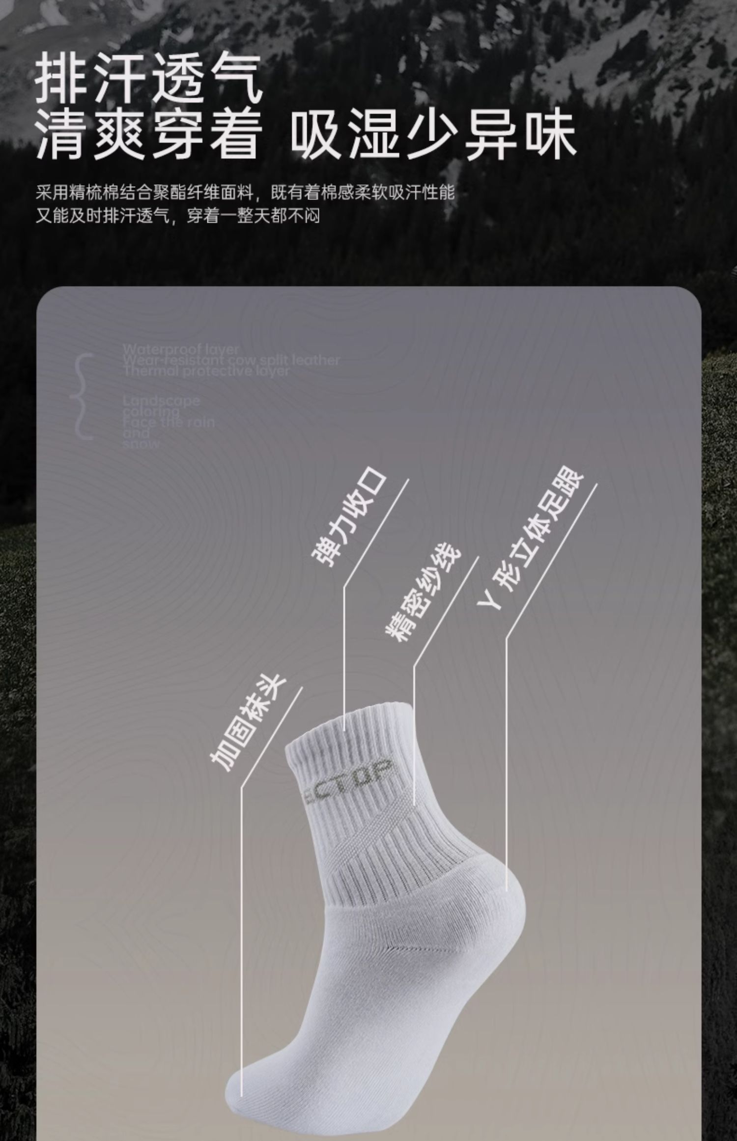 加厚毛巾底设计,可以达到快速吸湿的性能同时缓冲减震,足底落地轻缓舒适:弹力收口袜帮,轻弹力束住脚腕,行走不下滑:Y形立体足跟,包裹性好,减少行走摩擦。整体穿着顺滑柔弹,四季皆宜,满足多种穿搭需求。