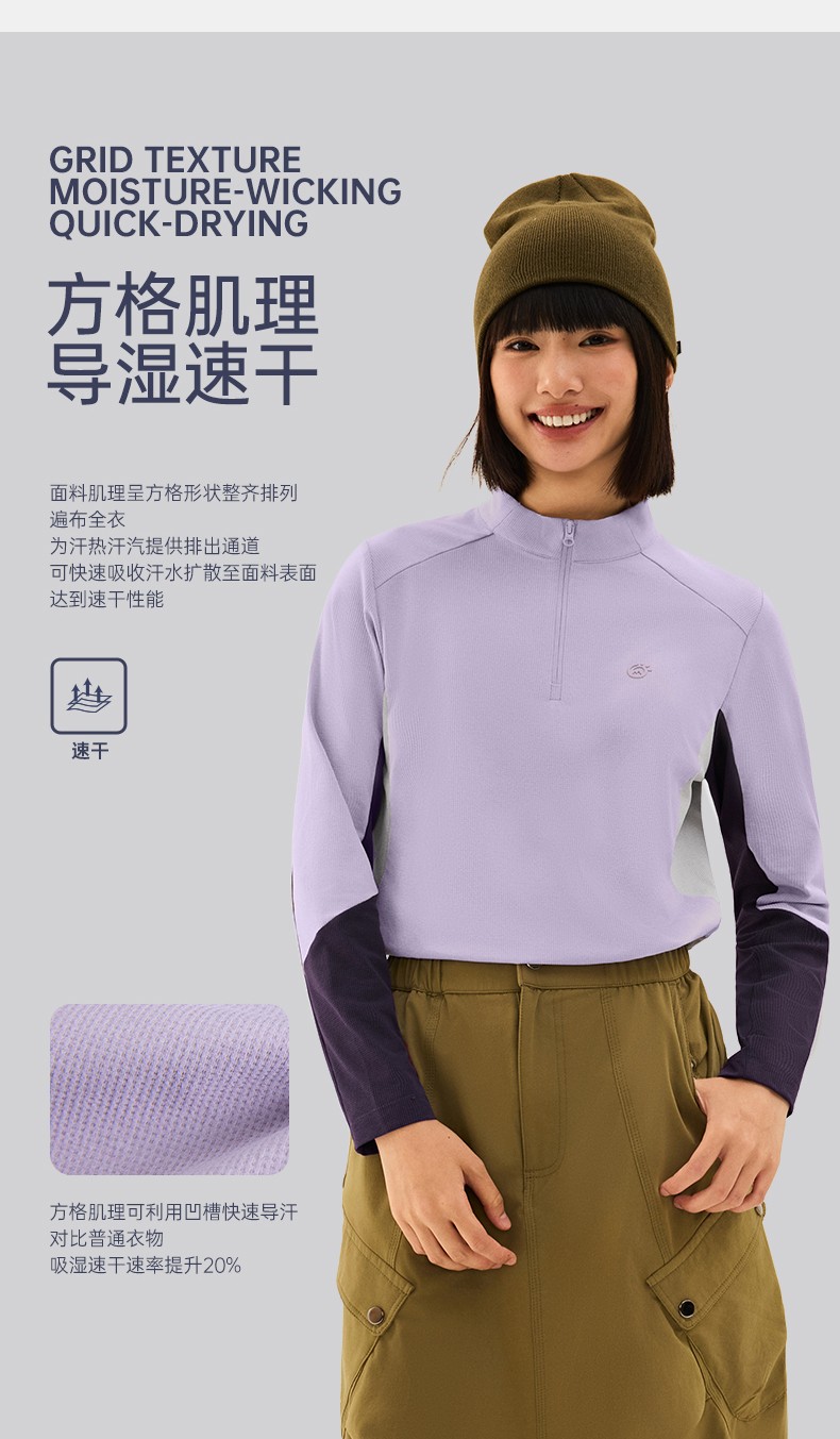 探拓 户外速干衣 女款长袖T恤透气徒步登山半开衫上衣打底衫 2537068TX 薄雾紫/落烟紫 轻盈弹力 合身无拘 户外速干衣 2537068TX 薄雾紫/落烟紫