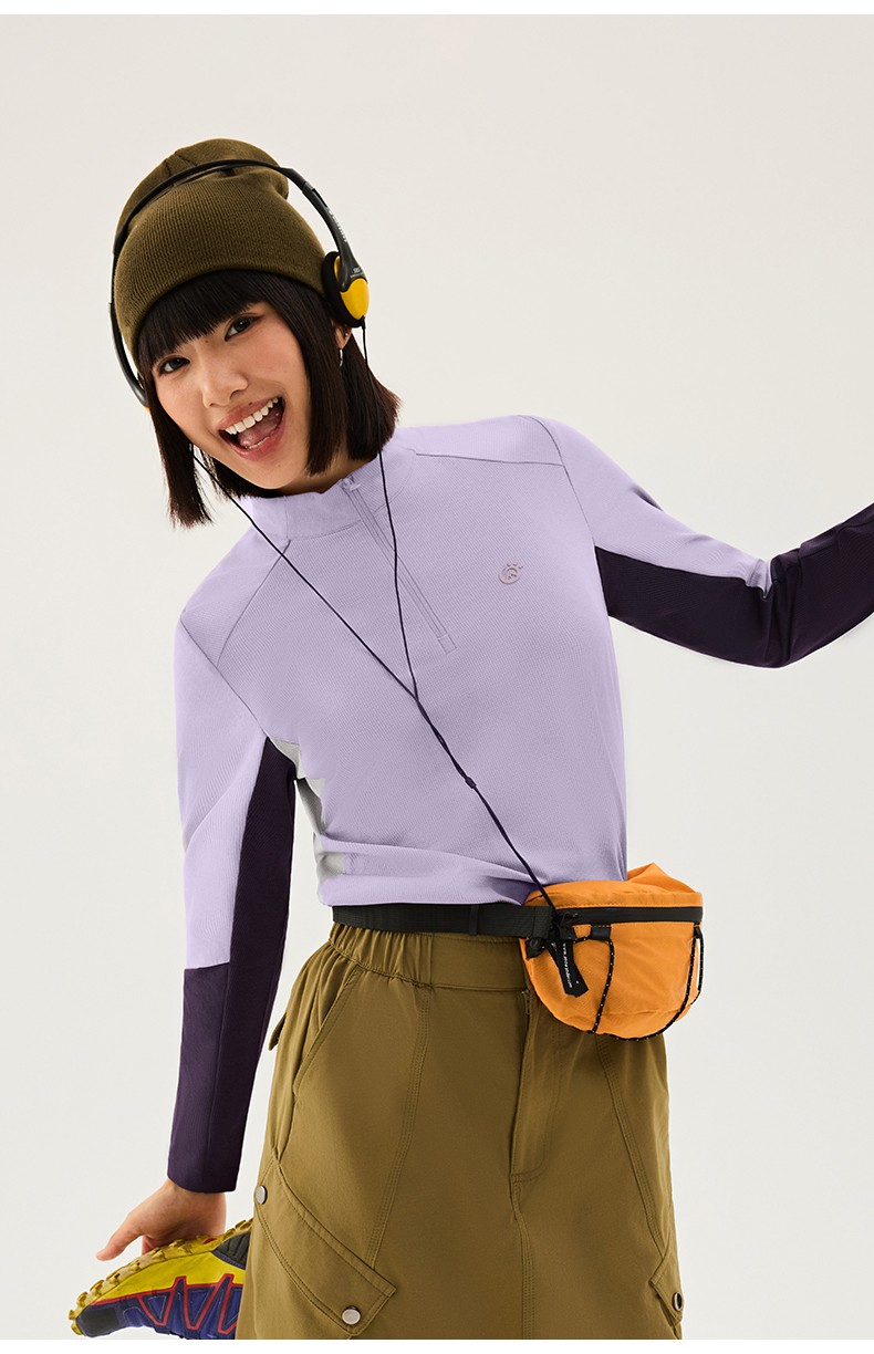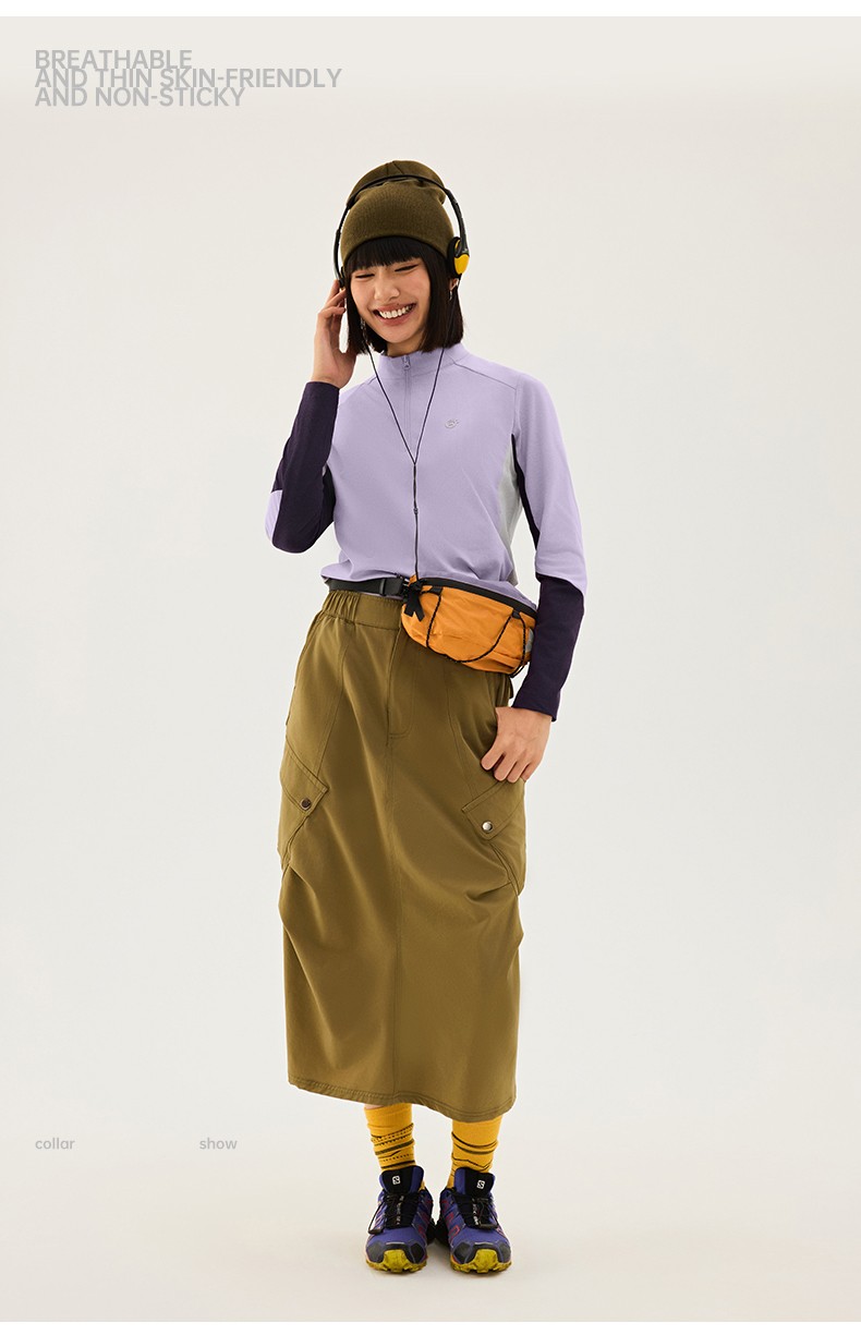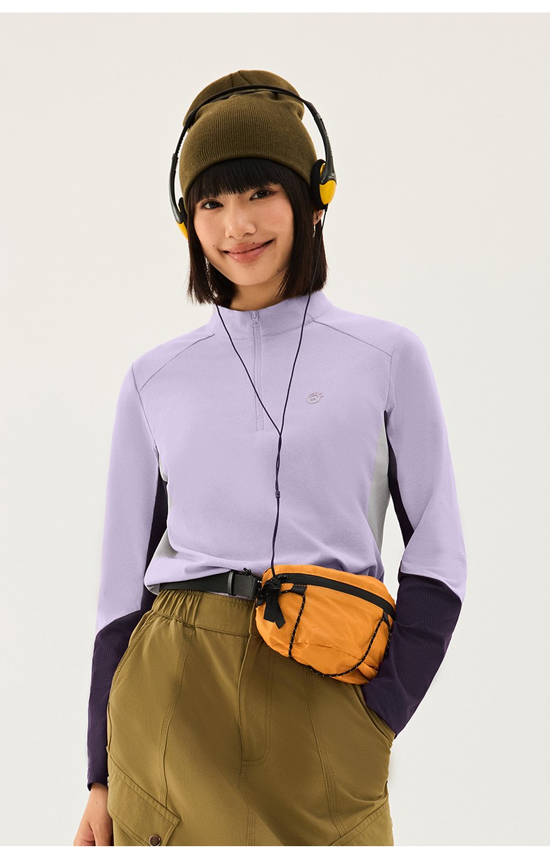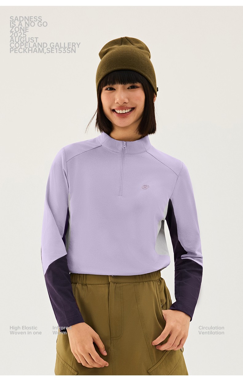 立领半开衫设计,既可以防住脖颈不受寒,也可以快速散热风,方便穿脱:侧缝拼接工艺丰富视觉设计感,展现体型柔感;正常合身版型,宽松不紧绷,适应多种身材穿搭