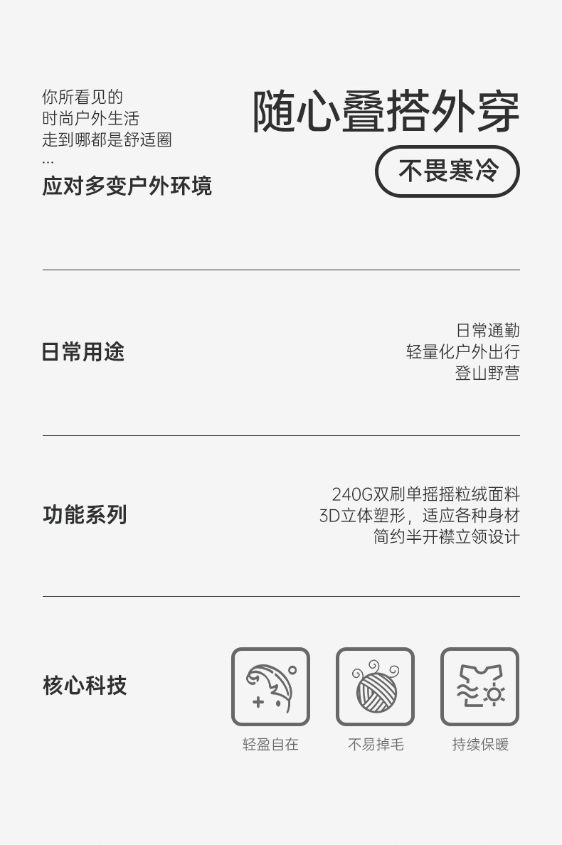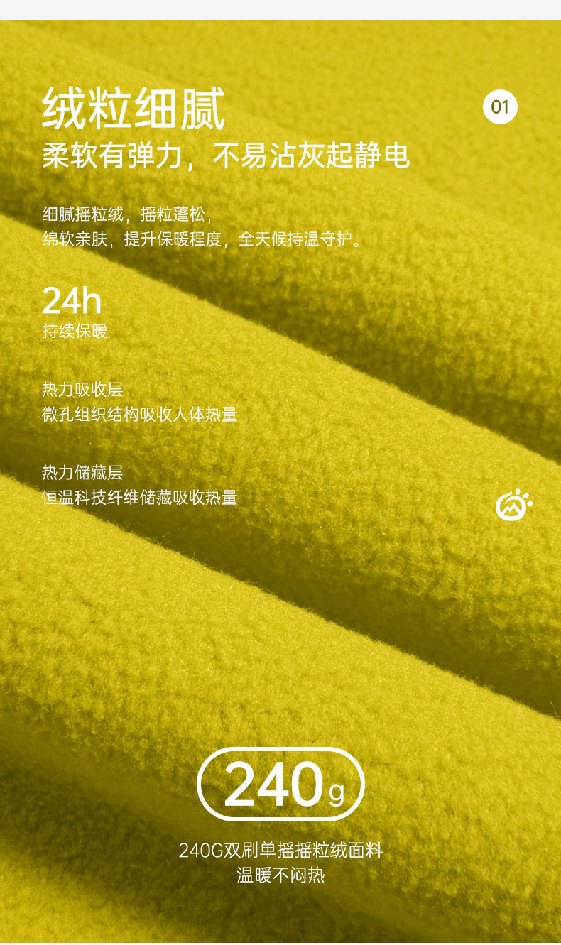 细腻摇粒绒,摇粒蓬松绵软亲肤,