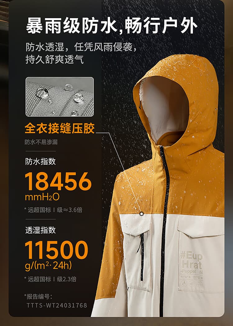 与冲锋衣的防风、防水、透湿 性能吻合。