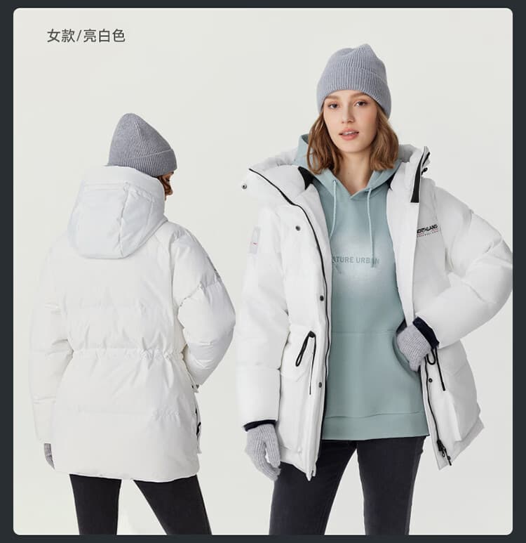 诺诗兰 羽绒服 鹅绒羽绒服女秋冬保暖防泼防油污登山徒步 NDJET2581E 亮白色 品质鹅绒 蓬松保暖 仿生科技 精准锁温