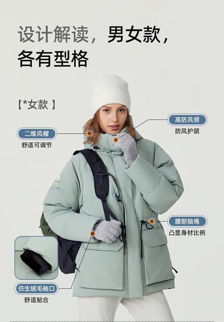 诺诗兰 羽绒服 鹅绒羽绒服女秋冬保暖防泼防油污登山徒步 NDJET2581E 山岚绿色 品质鹅绒 蓬松保暖 仿生科技 精准锁温