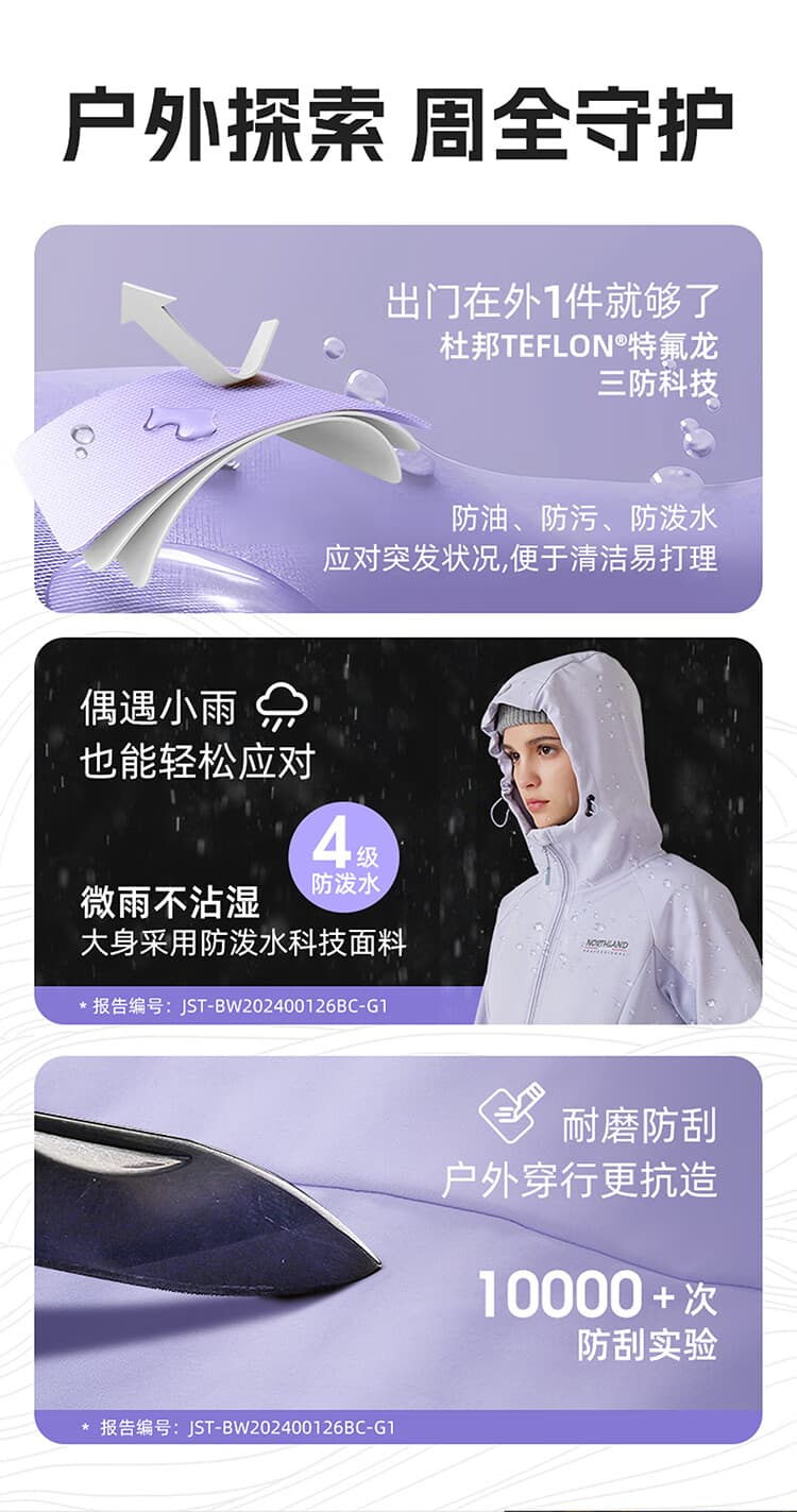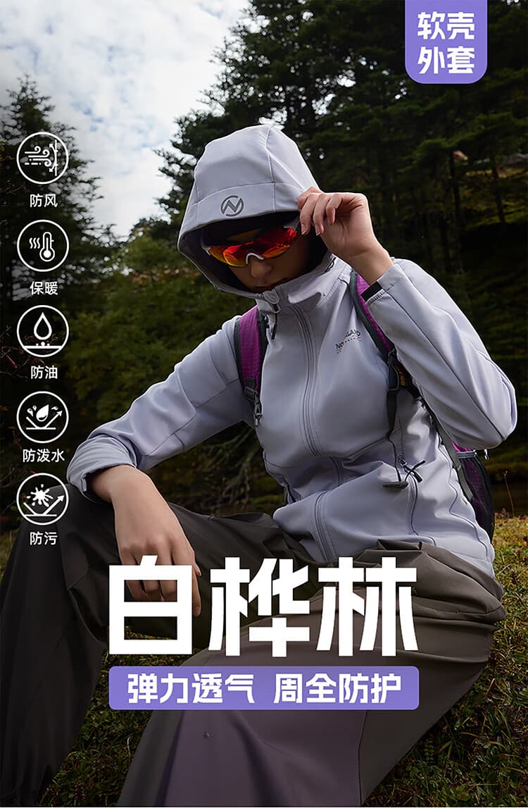 白桦林,喜光,耐严寒。对环境适应性强。这一特征与诺诗兰软壳衣的功能诉求高度吻合。白桦林软壳衣,用多功能科技面料,带来防泼水、防风、保暖、透气等多样防护功能,适应户外多变天气,满足全天候出行需求。徒步自然,感受大自然的力量与美丽。