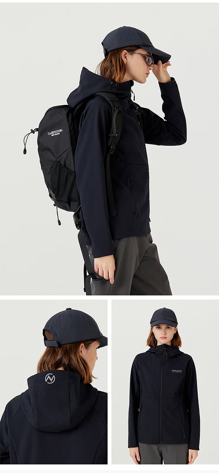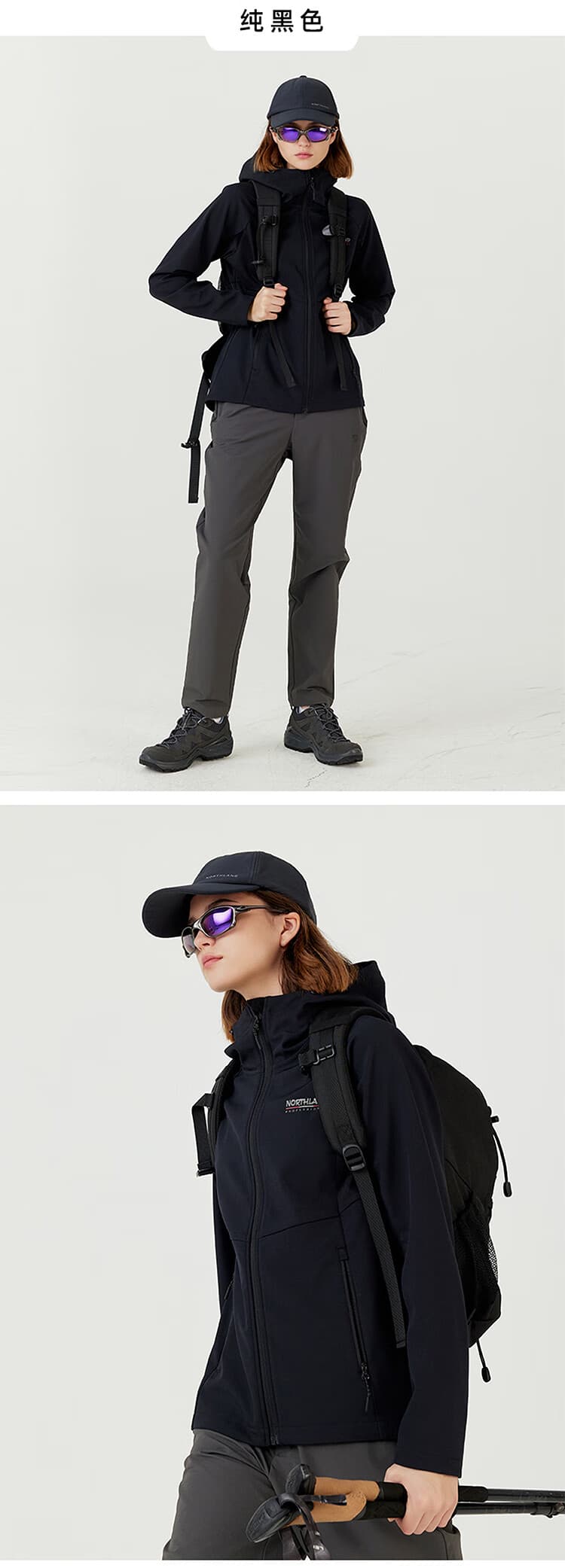 诺诗兰 【白桦林】女士风雪外套 防风防泼水软壳衣登防油防污徒步夹克外套 NXJEH2503E 纯黑色 抓绒内里 保暖锁温 耐磨防刮 舒适透气