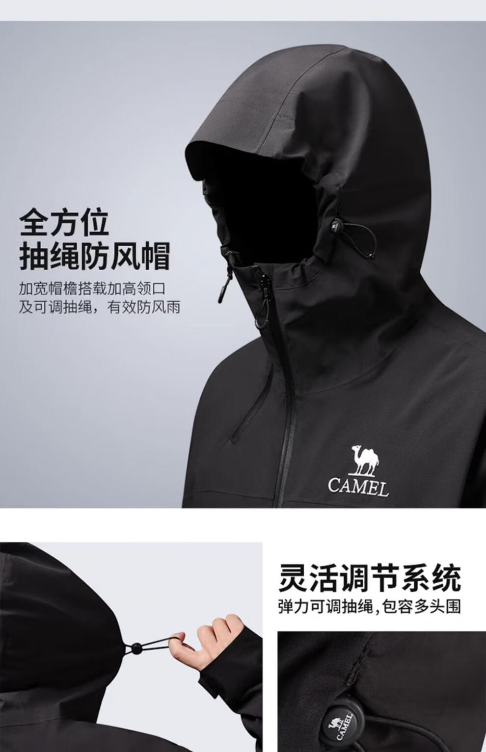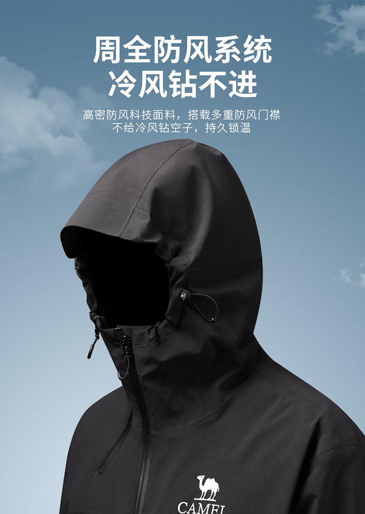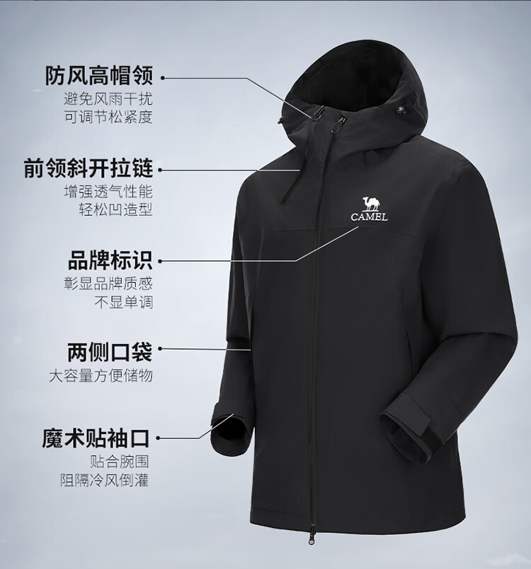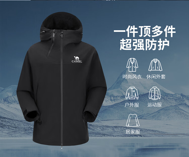 骆驼【黑甲】冲锋衣外套 秋冬硬壳夹克防风防水单层冲锋衣外套男 A34CATR727 幻影黑