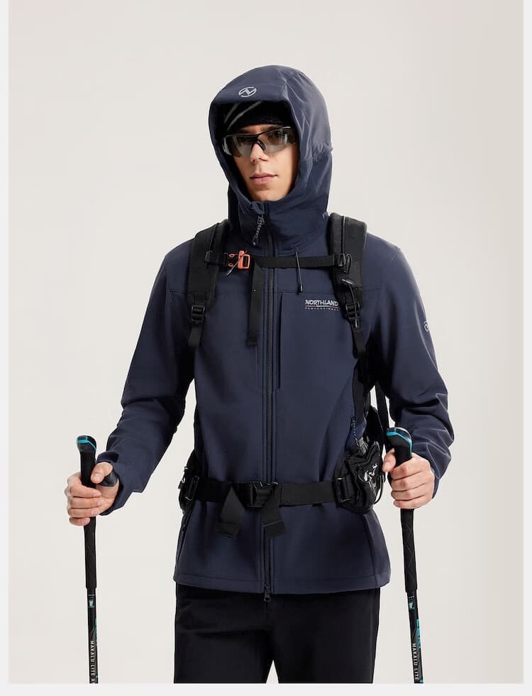 诺诗兰 软壳外套 25秋冬户外男士考杜拉软壳外套防风保暖风雪外套徒步户外登山服 NXJFH5476E 石墨蓝色/纯黑色