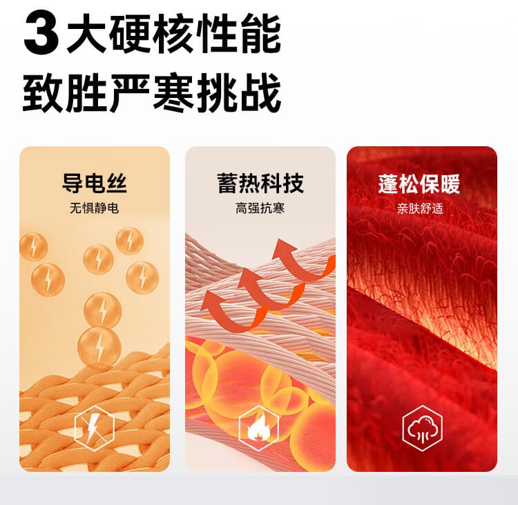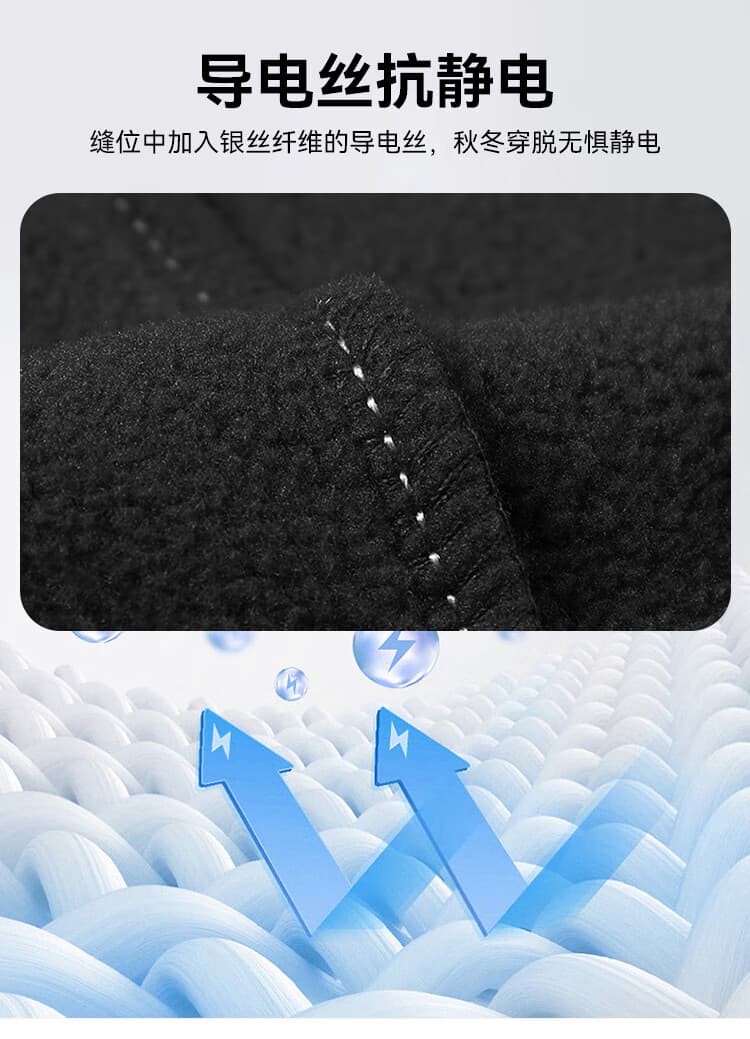 缝位加入含银丝纤维的导电丝,解决秋冬穿脱时的静电困扰。
