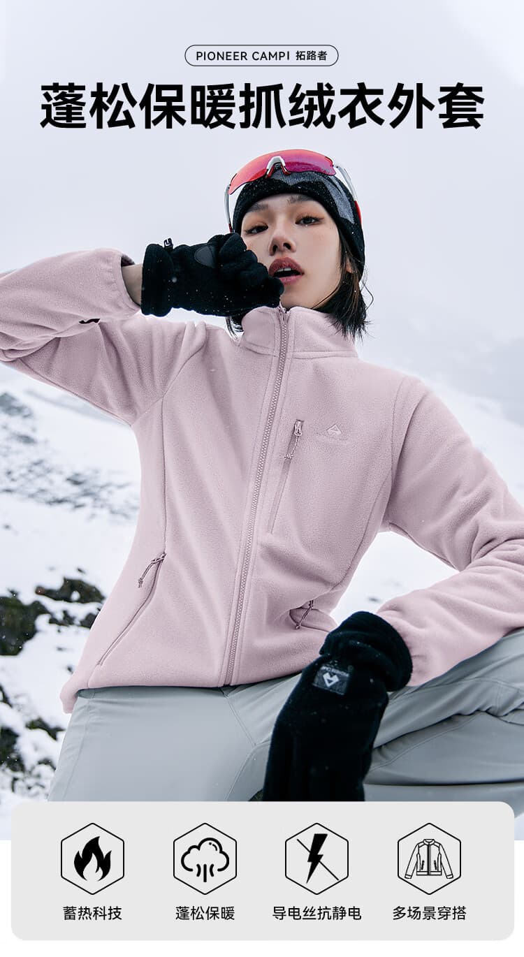 拓路者 摇粒绒抓绒衣 女秋冬户外运动徒步摇粒绒保暖防风立领开衫外套冲锋衣内胆 GKBLW30001 粉色 蓄热科技