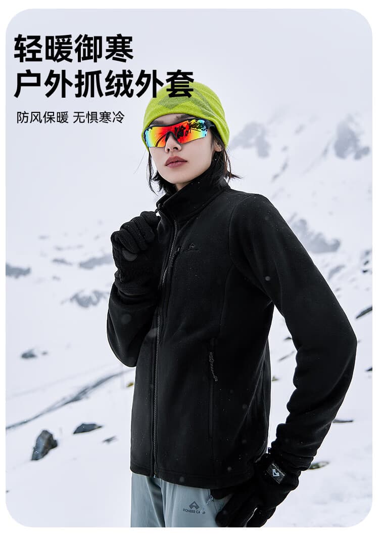 拓路者 摇粒绒抓绒衣 女秋冬户外运动徒步摇粒绒保暖防风立领开衫外套冲锋衣内胆 GKBLW30001 黑色 蓄热科技