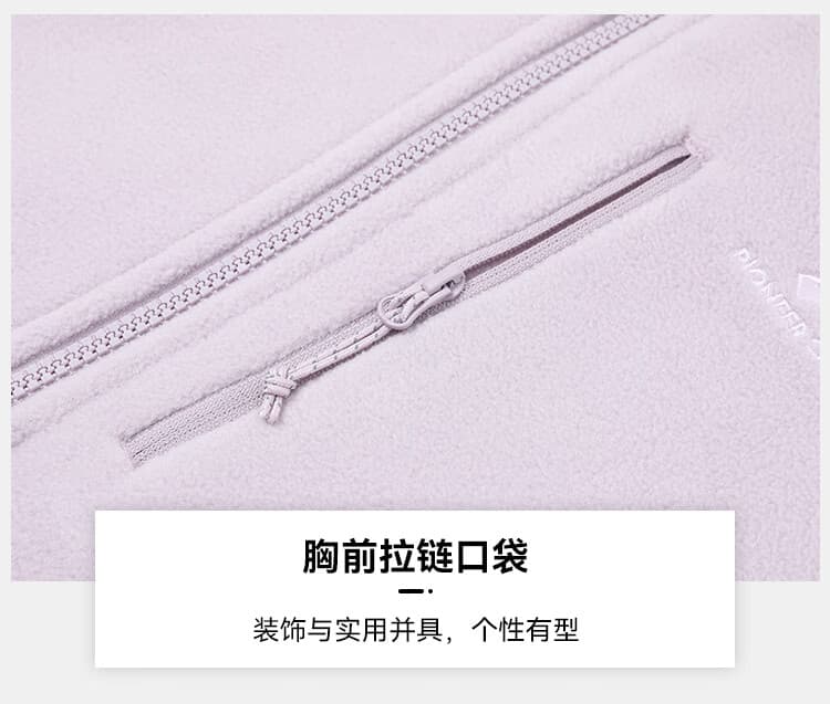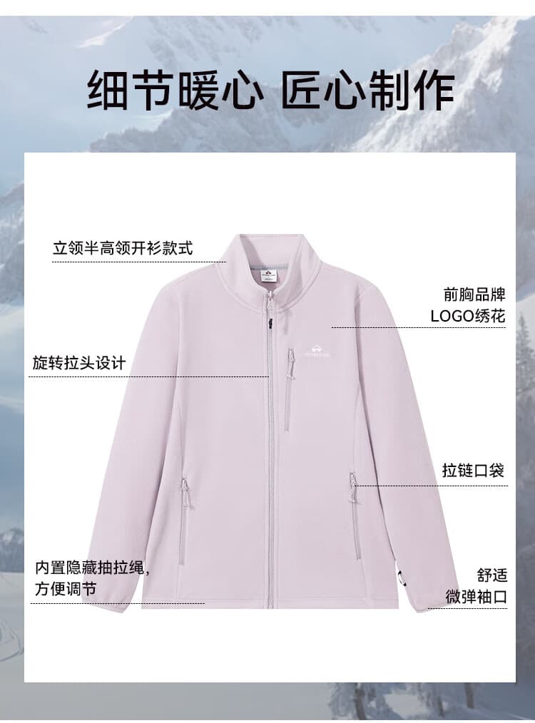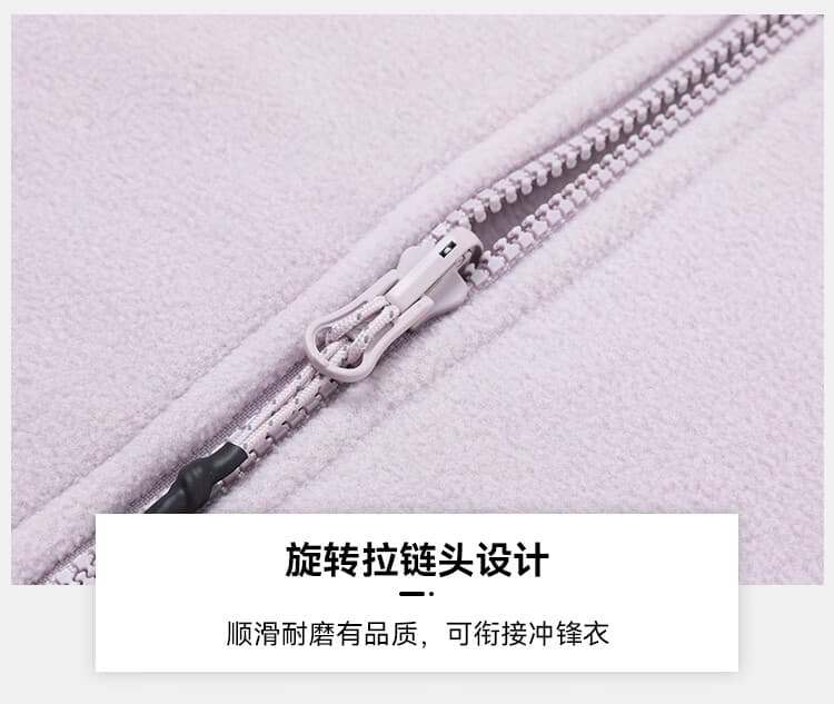 采用旋转拉头设计,能与所有拓路者三合一冲锋衣衔接,适配多场景;同时,立领半高领开衫款式,搭配隐藏抽拉绳、微弹袖口等细节,提升穿着便利性与舒适度。