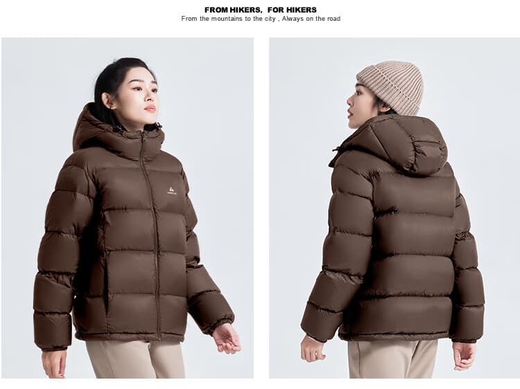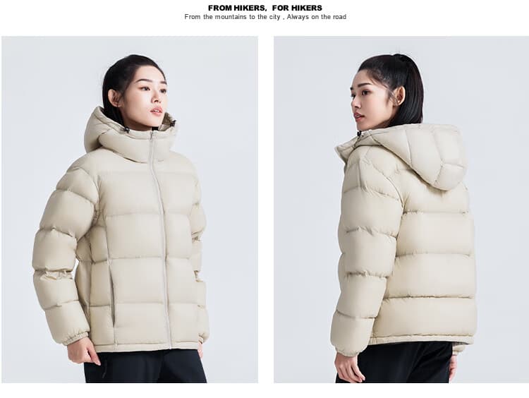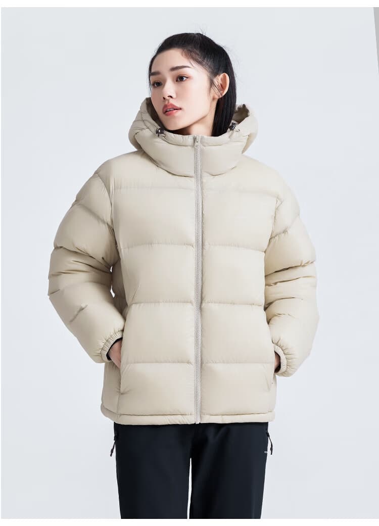 采用新型轻盈面料,穿着轻暖舒适,轻快无阻;连帽设计贴合头部,为冬季户外出行或日常穿搭提供温暖舒适的体验。