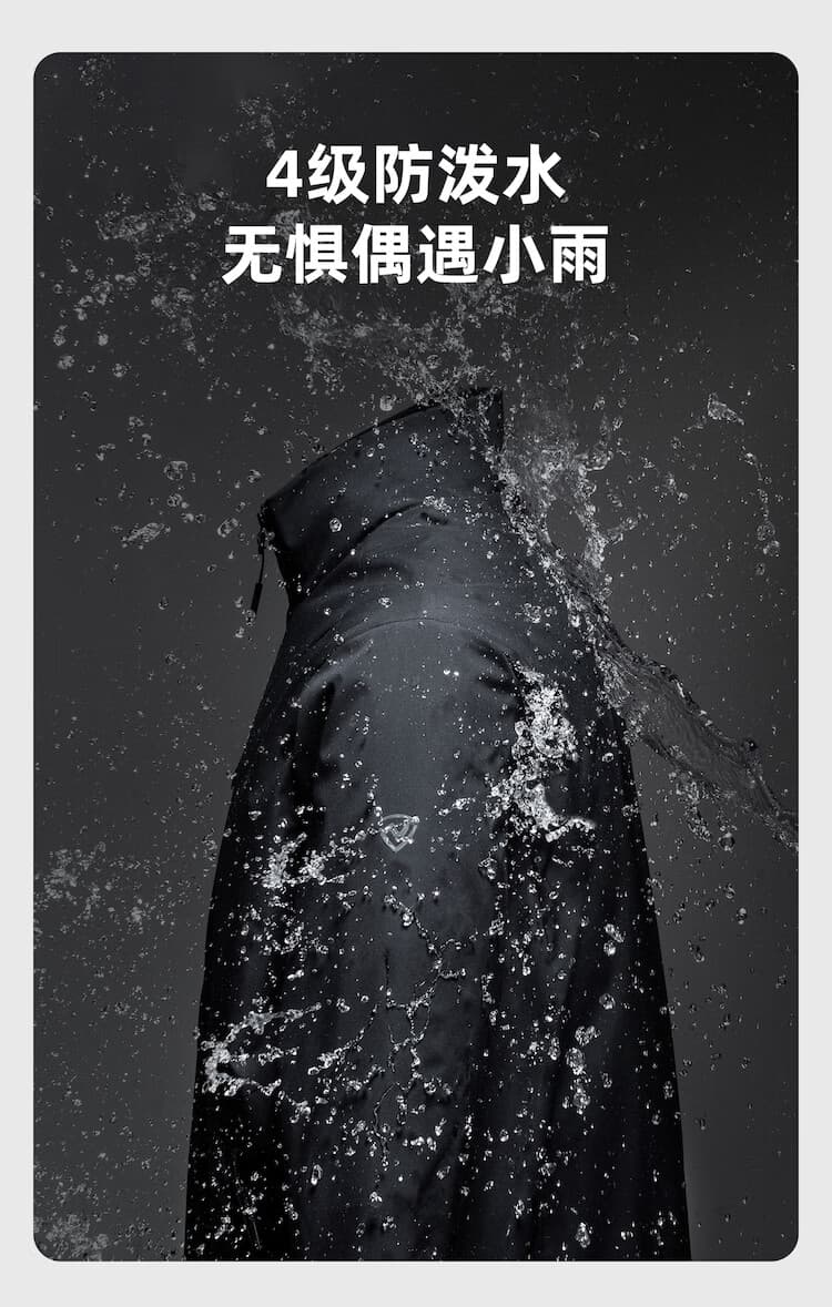 4 级防泼水:有效抵御小雨侵袭,日常出行偶遇降雨也能保持衣物干爽;