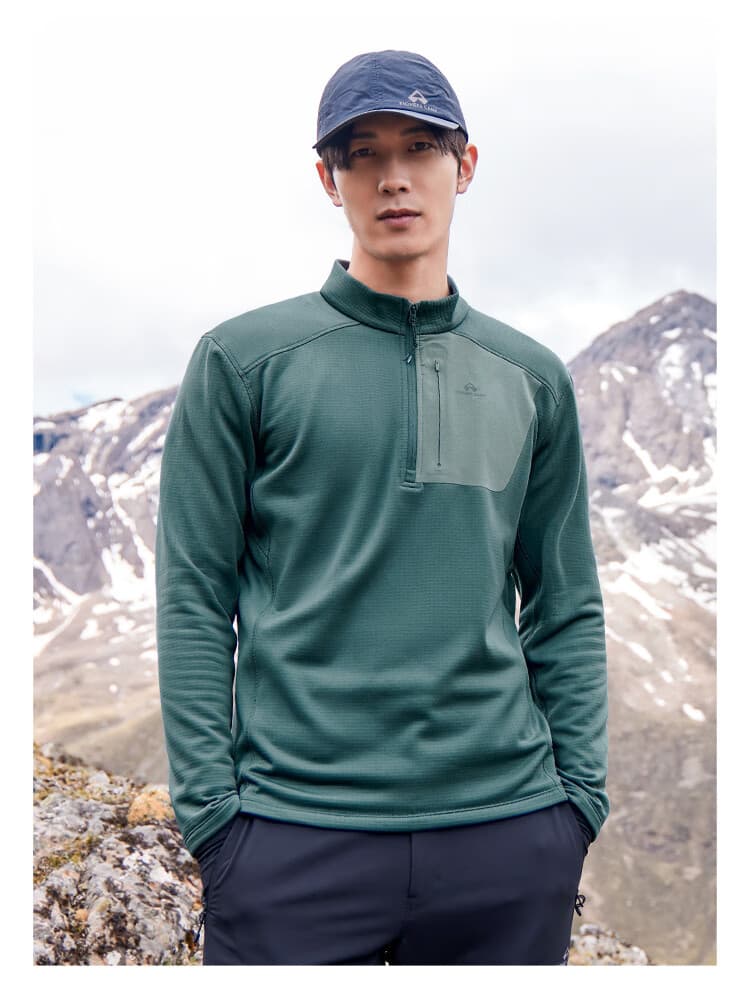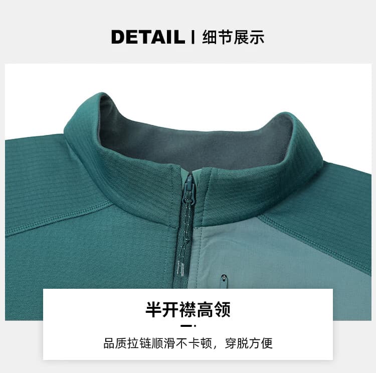 拓路者 男款抓绒衣 长袖t恤男士秋季透气抓绒衣半高领舒适打底衫摇粒绒内胆薄款上衣 XLW411012 松石蓝
