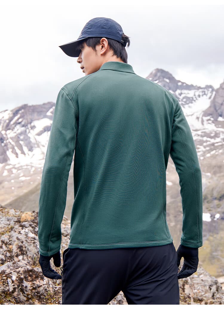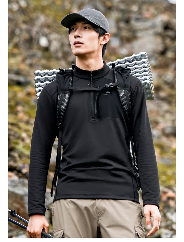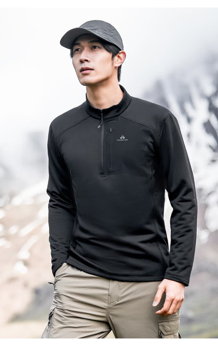 拓路者 男款抓绒衣 长袖t恤男士秋季透气抓绒衣半高领舒适打底衫摇粒绒内胆薄款上衣 XLW411012 黑色