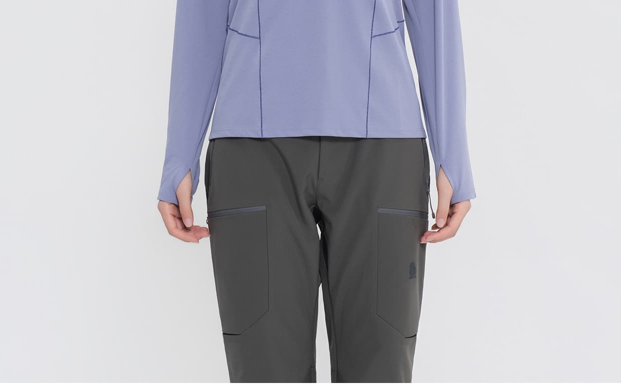 360° 全向弹力设计,活动无束缚,徒步动作更舒展。