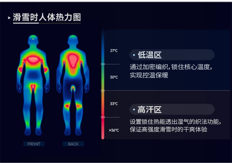 专业滑雪功能面料,吸湿排汗双在线,雪场暴汗不粘身。
