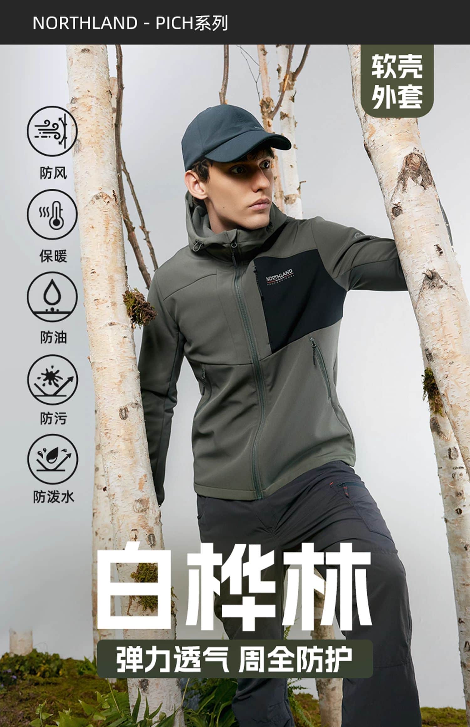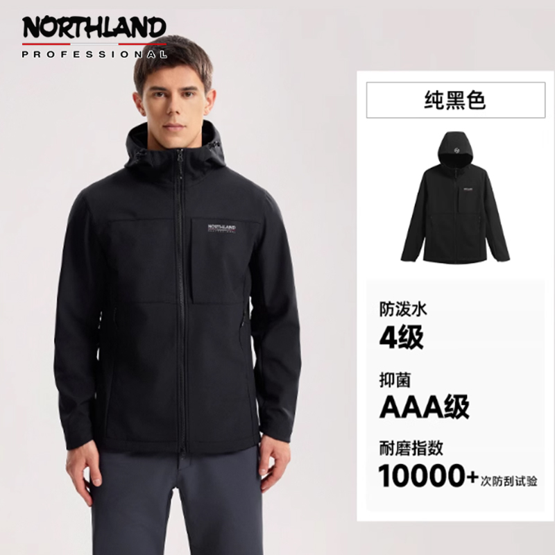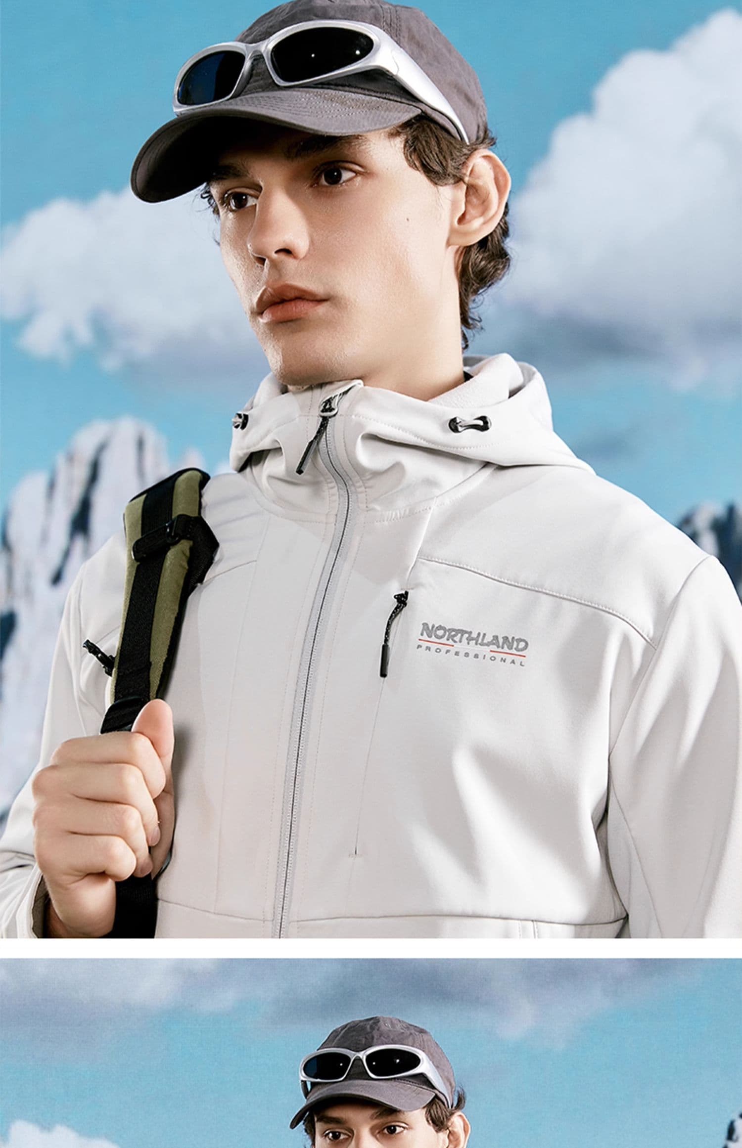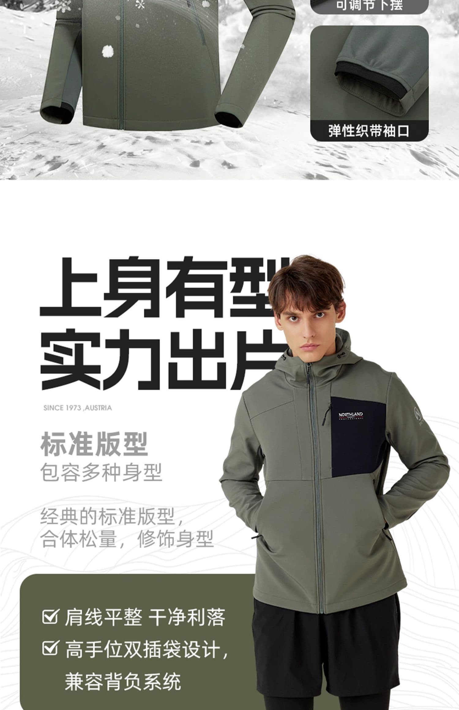 NORTHLAND诺诗兰 软壳衣 加绒男女秋冬防风冲锋衣 登山连帽外套 NXJEH5501E 螺青色