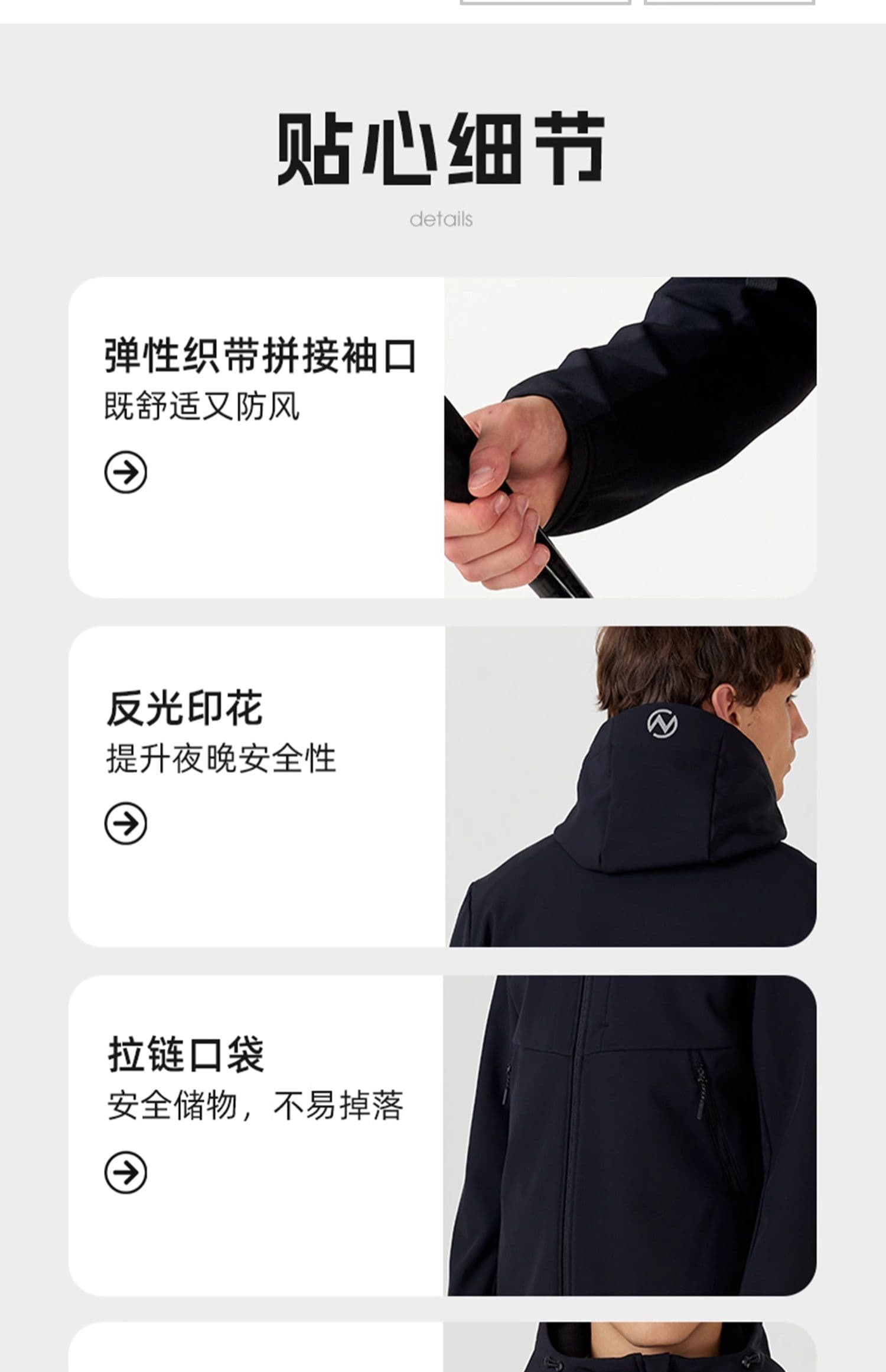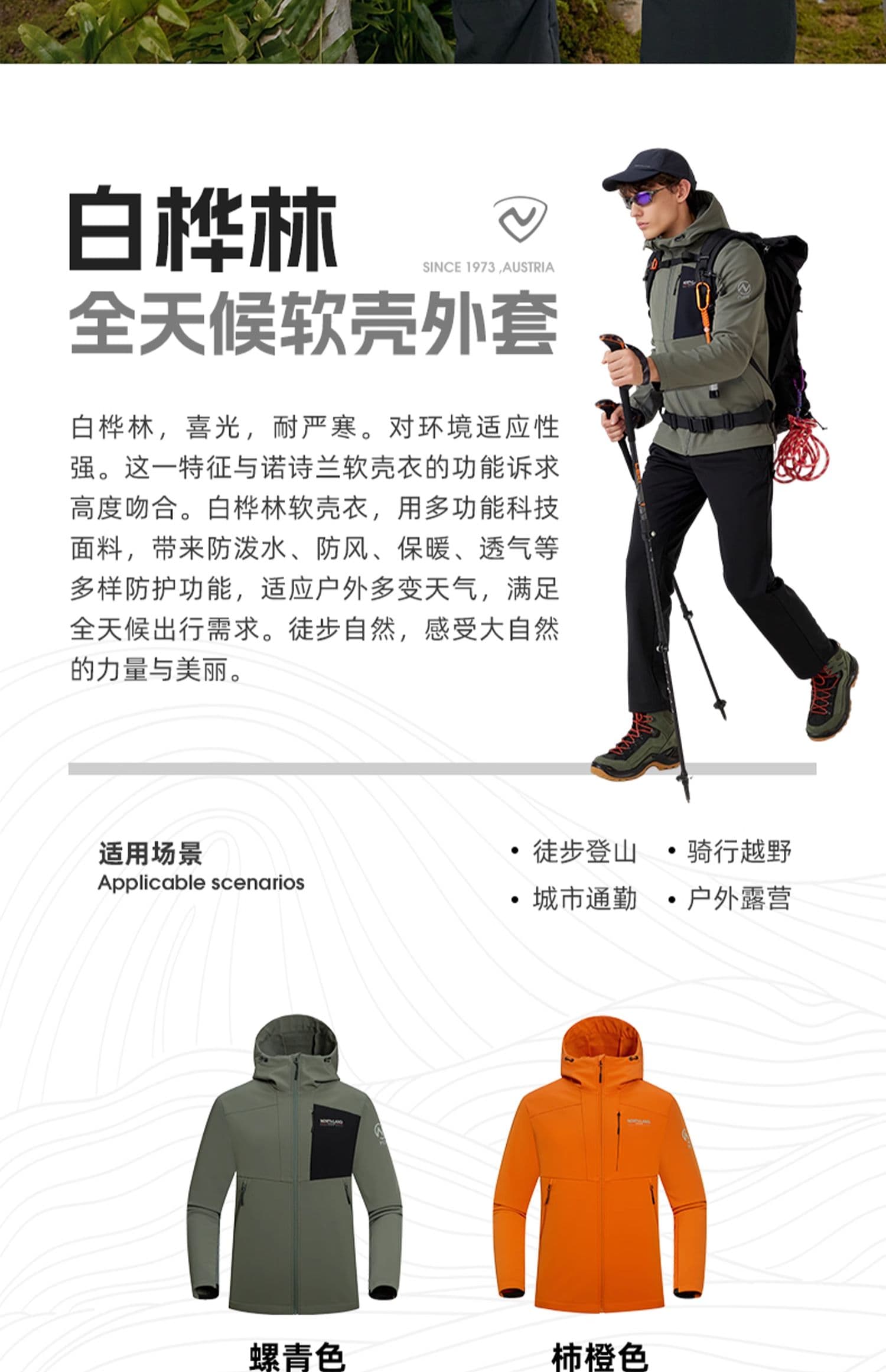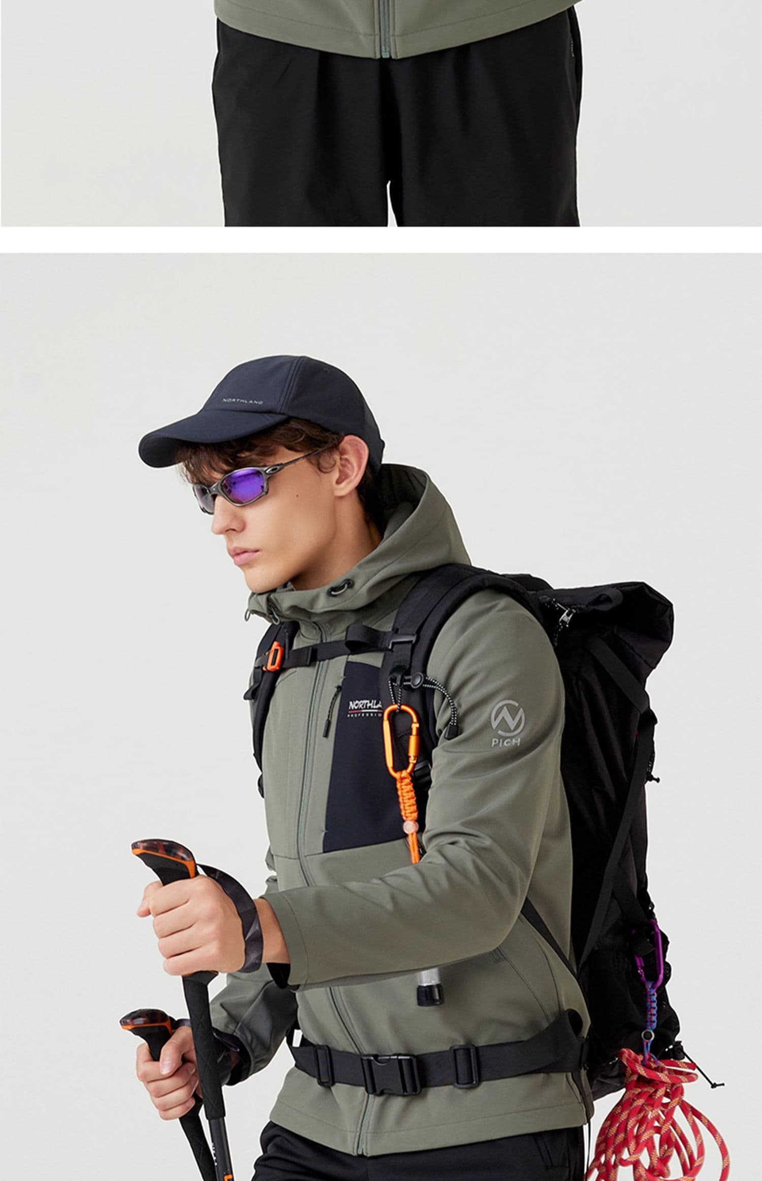 NORTHLAND诺诗兰 软壳衣 加绒男女秋冬防风冲锋衣 登山连帽外套 NXJEH5501E 螺青色