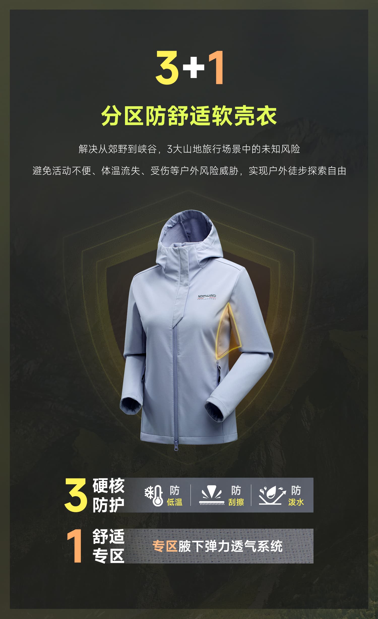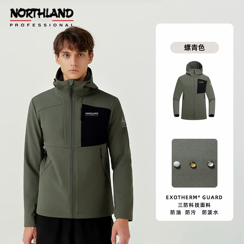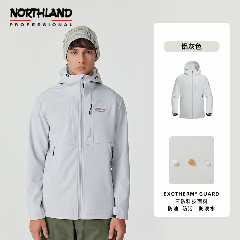 NORTHLAND诺诗兰 软壳衣 加绒男女秋冬防风冲锋衣 登山连帽外套 NXJEH5501E 纯黑色
